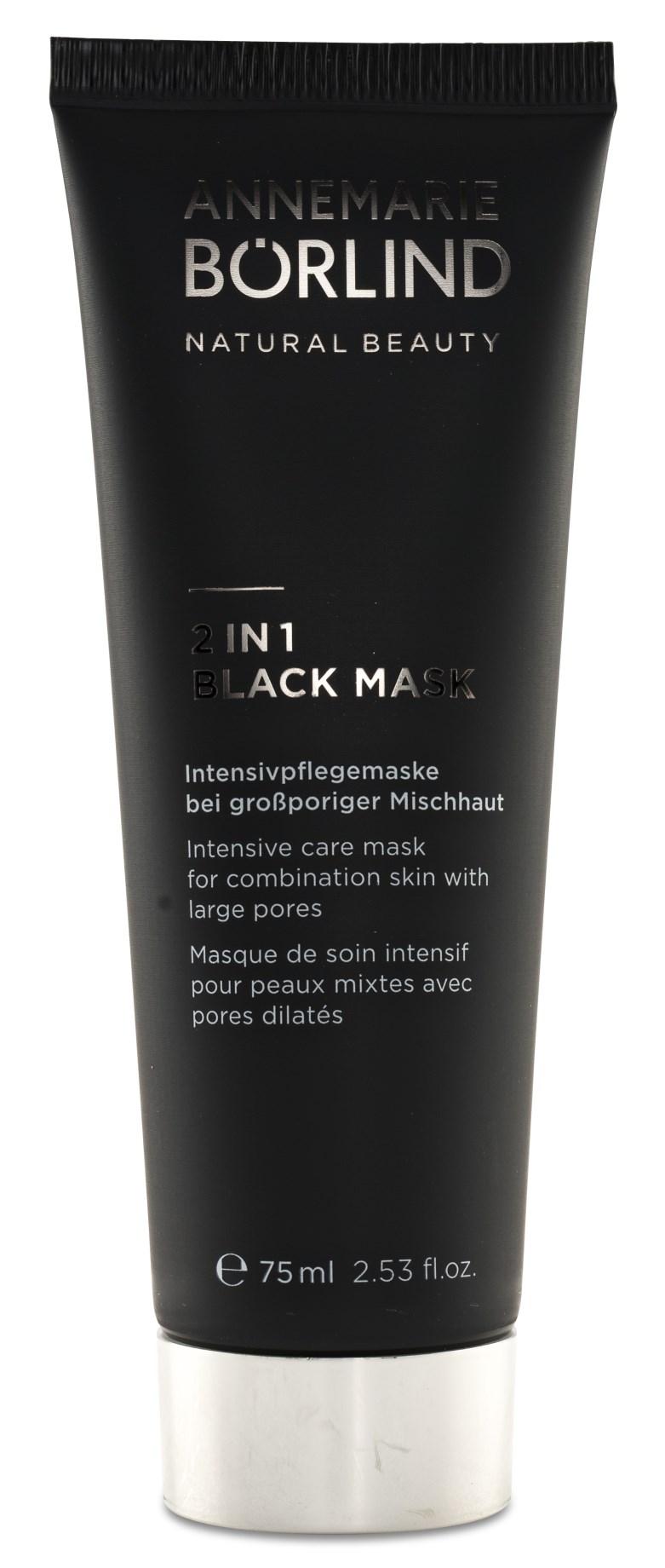 Anne-Marie Börlind 2 in 1 Black Mask är en naturlig, skonsam och effektiv ansiktsrengöring med två produkter i ett. 2 in 1 Black Mask fungerar nämligen både som en vårdande ansiktsmask som rengör på djupet, och som en hudvänlig ansiktspeeling. Din hud upplevs mjuk och slät, samtidigt som ingredienserna verkar porförminskande.