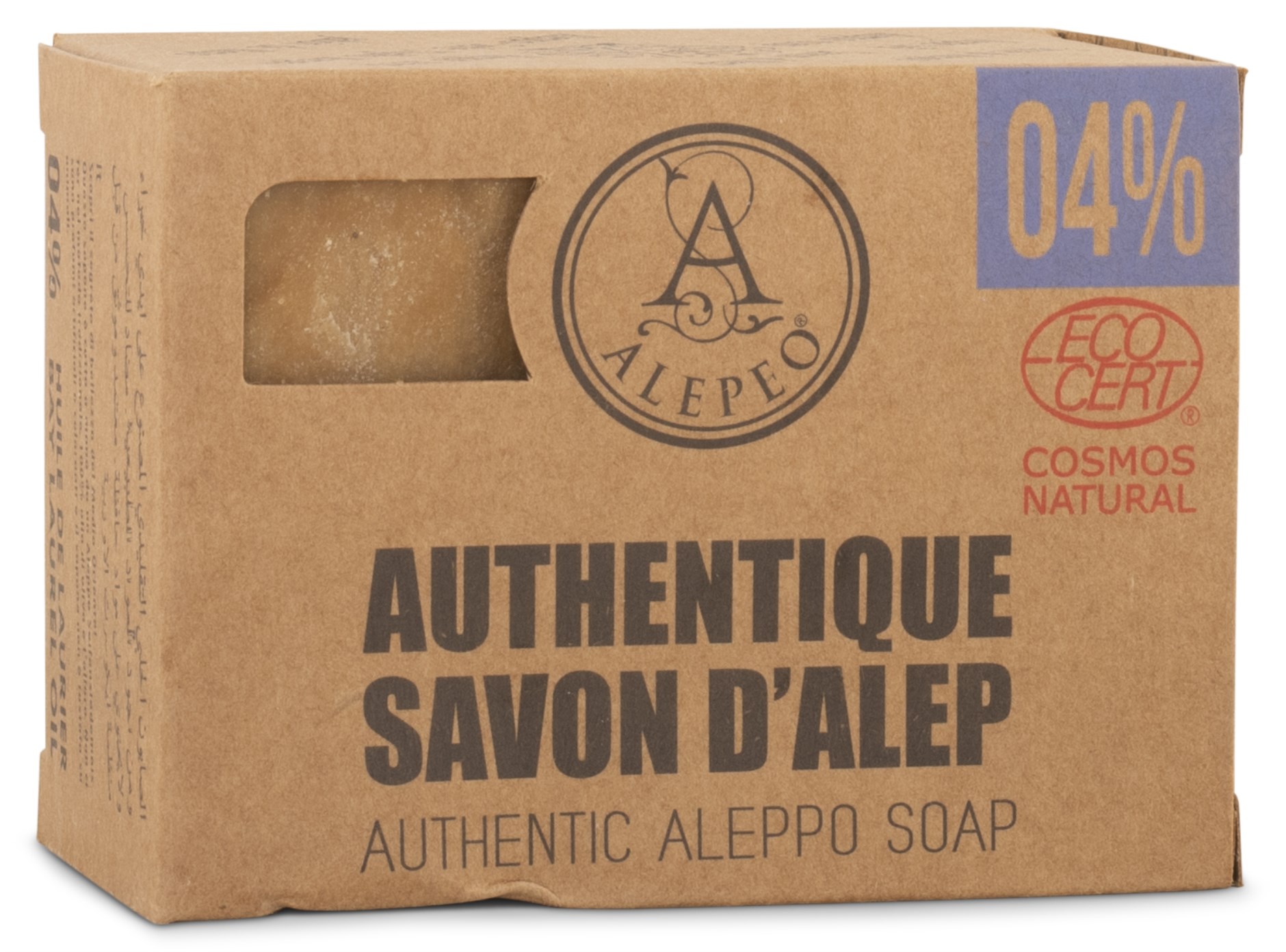 Aleppotvålen från Syrien har en tusenårig historia och sägs vara ursprunget till dagens hårda tvålar som används världen över. Detta är den ultimata tvålen för dig som vill ha en effektiv och mild tvål som passar till den mesta sortens rengöring. Aleppotvål 4 % är en certifierad aleppotvål av högsta kvalitet. I innehållet finns vårdande olivolja som kombineras perfekt ihop med de välgörande egenskaperna hos lagerbärsoljan.