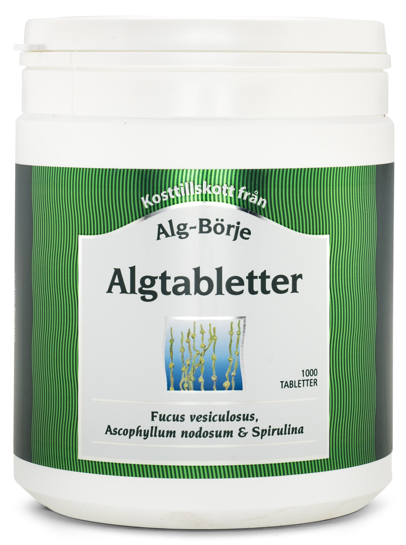 Alger är välkända som näringrika hälsoväxter. Alger är rika på hälsosamt fett, vitaminer och mineraler. Algtabletter från Alg-Börje innehåller knöltång från Kanada och blåstång från Irland, och är ett smidigt sätt att få i sig algernas nyttigheter. Algtång och blåstånng innehåller inte enbart rikliga mängder av nyttiga fettsyror, vitaminer och mineraler, du finner även 19 olika aminosyror och spårämnen. Alg-Börje Algtabletter innehåller även spirulina från inre Mongoliet som är en näringsrik alg med ett innehålla av B12 och järn.