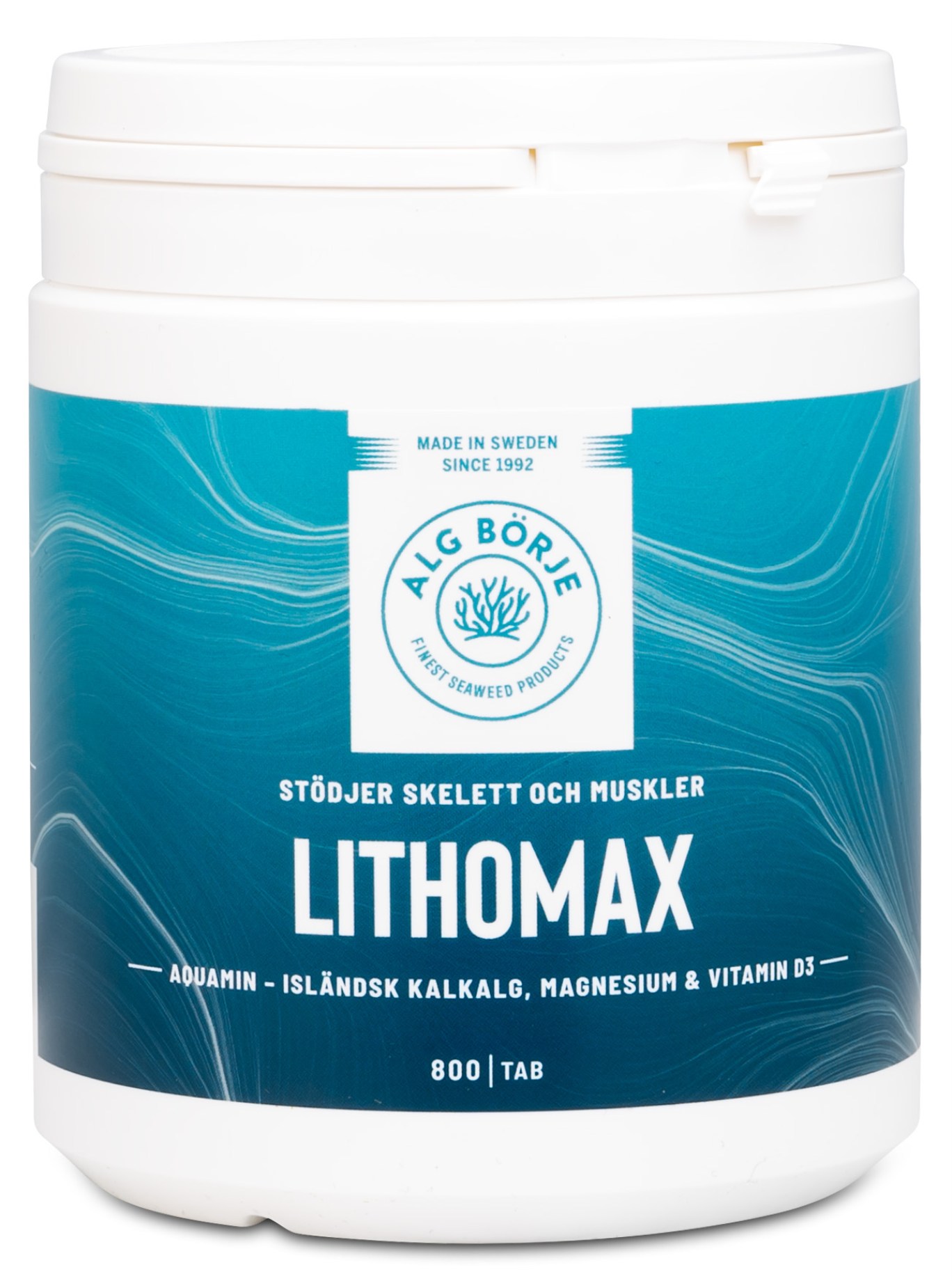 Alg-Börje Lithomax är skapad med omtanke av dig som har svårt att sova på grund av oroliga ben, så kallad restless legs. Alg-Börje Lithomax är ett kliniskt bevisat kosttillskott som innehåller naturligt multimineral och vitamin D3. Ta tabletterna strax innan sänggående för bästa effekt och bättre nattsömn. Tabletterna innehåller även vitamin D3 100IE för att underlätta för kroppen att tillgodogöra sig kalcium och övriga mineraler i Alg-Börje Lithomax.