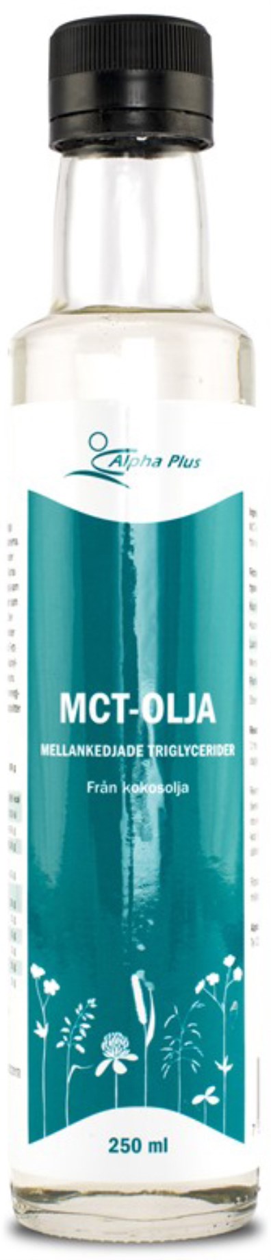 Alpha Plus MCT Olja är en koncentrerad produkt med MCT från kokosolja. Oljan kommer från ekologiska och GMO-fria kokosnötter från Filipinerna, odlade utan bekämpningsmedel under rättvisa förhållanden. Alpha Plus MCT Olja är helt ren och fri från tillsatsämnen. MCT Olja innehåller en hög andel mellankedjade triglycerider (Medium Chain Triglycerides), hela 93 %, vilket motsvarar 13 gram per 15 ml olja. Oljan är även rik på det essentiella näringsämnet laurinsyra samt kaprylsyra. Alpha Plus MCT Olja passar som hälsotillskott, såväl vid viktnedgång som vid träning.