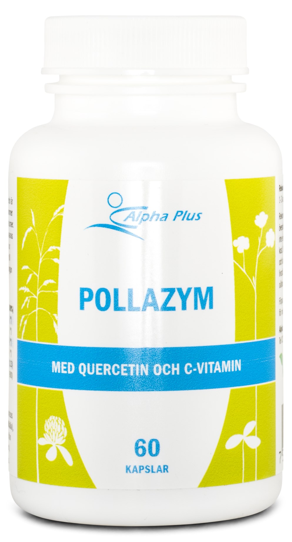 Alpha Plus PollaZym är ett kosttillskott med enzymer och näringsämnen, bland annat papain, c-vitamin och quercetin. Quercetin är en flavonoid och ett naturligt gult färgämne som förekommer i flertalet växter. Papain är ett enzym som utvinns ur papayaträdets mjölksaft och frukter. Alpha Plus PollaZym innehåller C-vitamin som bidrar till immunsystemets normala funktion.
