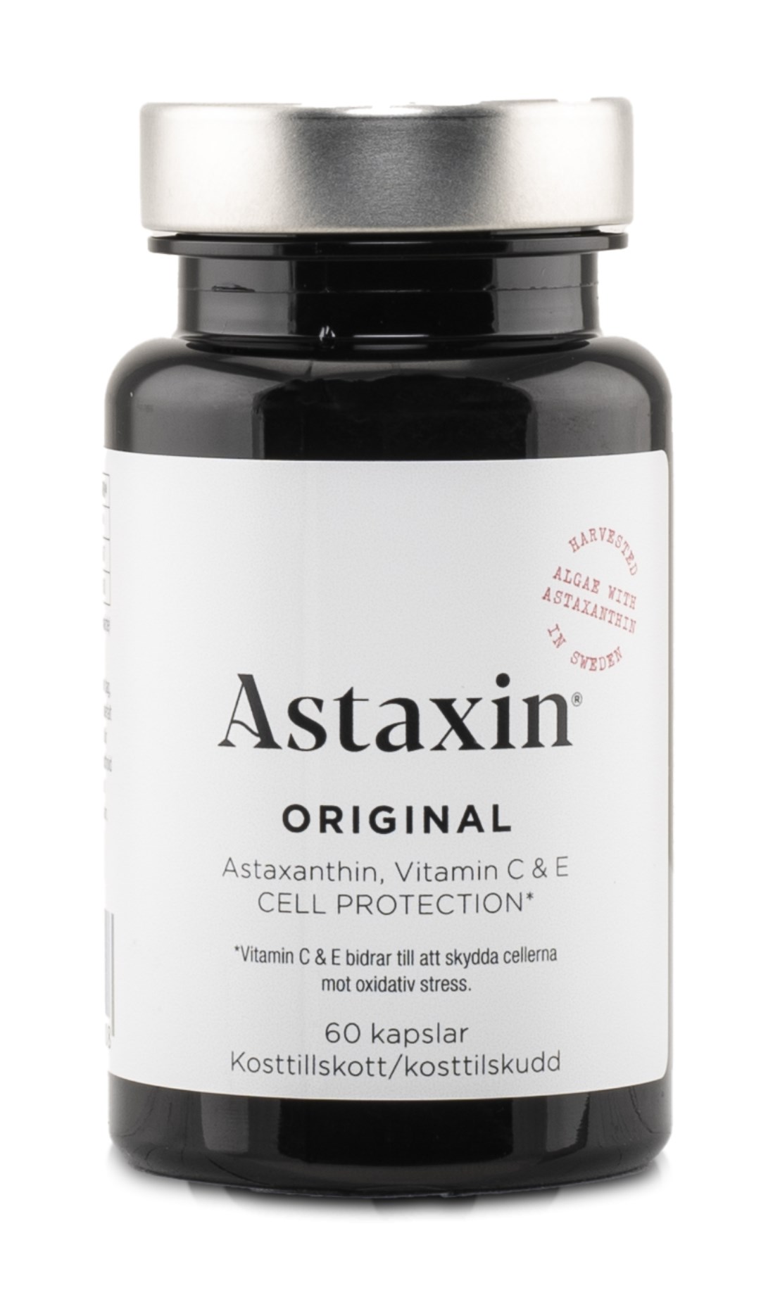 Astaxin är en produkt rik på astaxanthin, vitamin E och C, vilka fungerar som antioxidanter som bidrar till att skydda cellerna mot oxidativ stress. Vitamin C bidrar också till ett normalt immunsystem, och på så vis hjälper det dig att hålla dig frisk och pigg. Tillskottet är baserat på mjöl från algen Haematococcus Pluvialis som är en naturlig källa till astaxanthin. Tillskottet Astaxin har rönt stort intresse bland idrottare och idrottsforskare under flera årtionden.