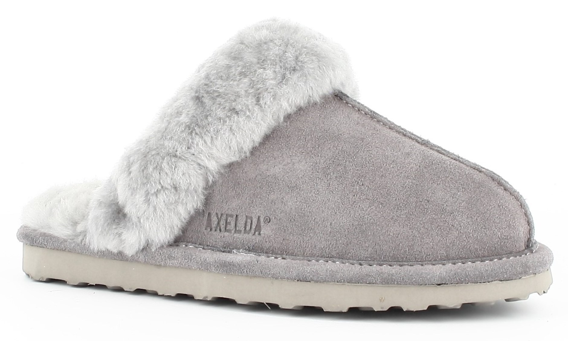 Axelda Tofflor Nancy är ett par klassiska tofflor i slip in modell till dam. Tofflan har en dekorativ fårskinnspäls längs öppningen och även invändigt samt en tjock söm på frampartiet som en snygg detalj. Mjukt skum i fotbädden ger en skön komfort.