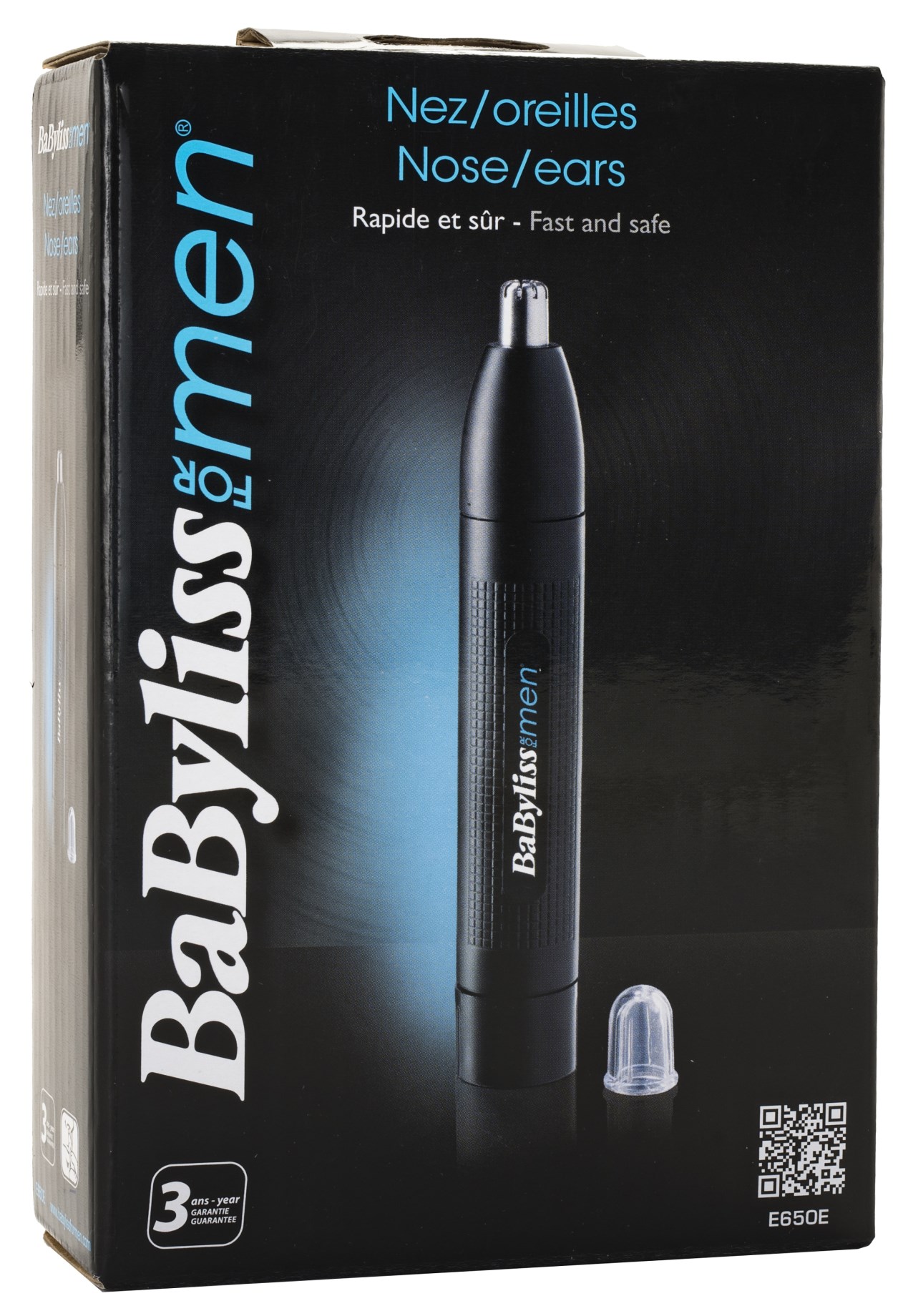 BaByliss Näs- och öronhårstrimmer E650E gör det enkelt och smidigt att ta bort oönskat hår utan problem. Den smidiga trimmern är liten och behändig att använda och har ett cirkelformat klippsystem som ger den en mycket hög precision. Huvudet på BaByliss Näs- och öronhårstrimmer är enkelt att rengöra med vatten efter varje användning. Avlägsna hår i näsa och öron på ett säkert sätt med en trimmer från BaByliss!