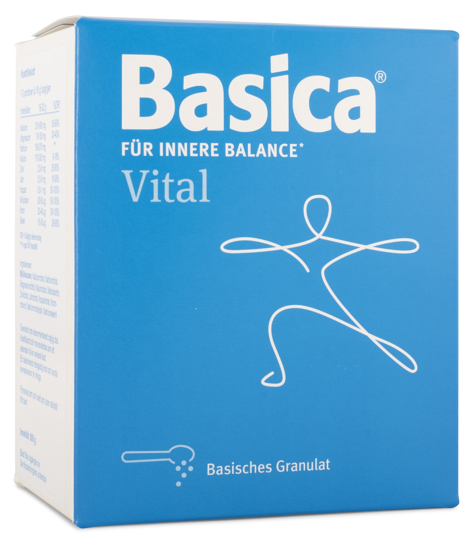 Basica Vital är ett populärt näringstillskott med basiska mineral, som bidrar till syra-basbalansen i kroppen. Mineral behövs i minimala mängder, men är trots det livsviktiga för att våra kroppsfunktioner ska fungera normalt. Järn bidrar till en normal blodbildning och påverkar därigenom trötthet och utmattning. Zink, koppar och selen verkar antioxidantivt och bidrar till att motverka cellnedbrytning. Magnesium, kalcium och kalium bidrar alla till normala muskelfunktioner och kalcium bidrar även till en normal benstomme. Basica Vital är ett dagligt tillskott för din allmänhälsa.