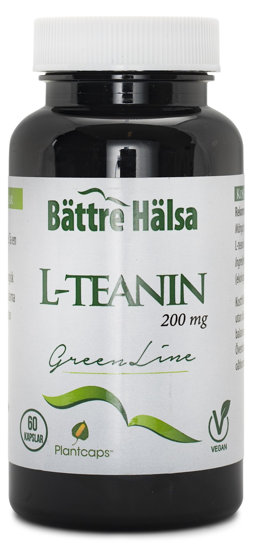 L-teanin Green Line är ett extra rent aminosyratillskott från Bättre Hälsa. L-teanin är en aminosyra som förekommer naturligt i grönt te, och en av anledningarna till att en kopp grönt te har blivit så populärt att dricka kvällstid före nattsömn. L-teanin i grönt te har kopplats samman med både lugn och fokus. L-teanin Green Line rekommenderas att intas på kvällen innan sömn, eller i samband med morgonkaffet.