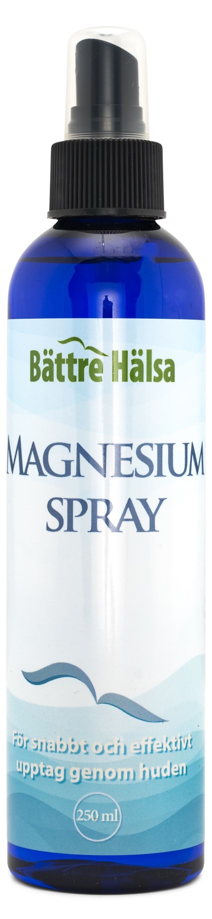 Massera dina ömma leder och muskler med Bättre Hälsa Magnesiumspray som är en flytande form av magnesiumklorid hexahydrat. Sprayen tas upp snabbt och smidigt direkt via huden vilket ger ett extra högt upptag. Med varje omgång du sprayar tillförs 27 mg magnesium som bland annat verkar för normal muskelavslappning och bidrar till cirka 300 olika enzymprocesser. Spraya Bättre Hälsa Magnesiumspray direkt på huden eller i händerna och massera in där det behövs. Den superlätta formulan känns som vatten på huden och lämnar inte något kladd efter sig. Du kan spraya upp till 30 doser per dag.