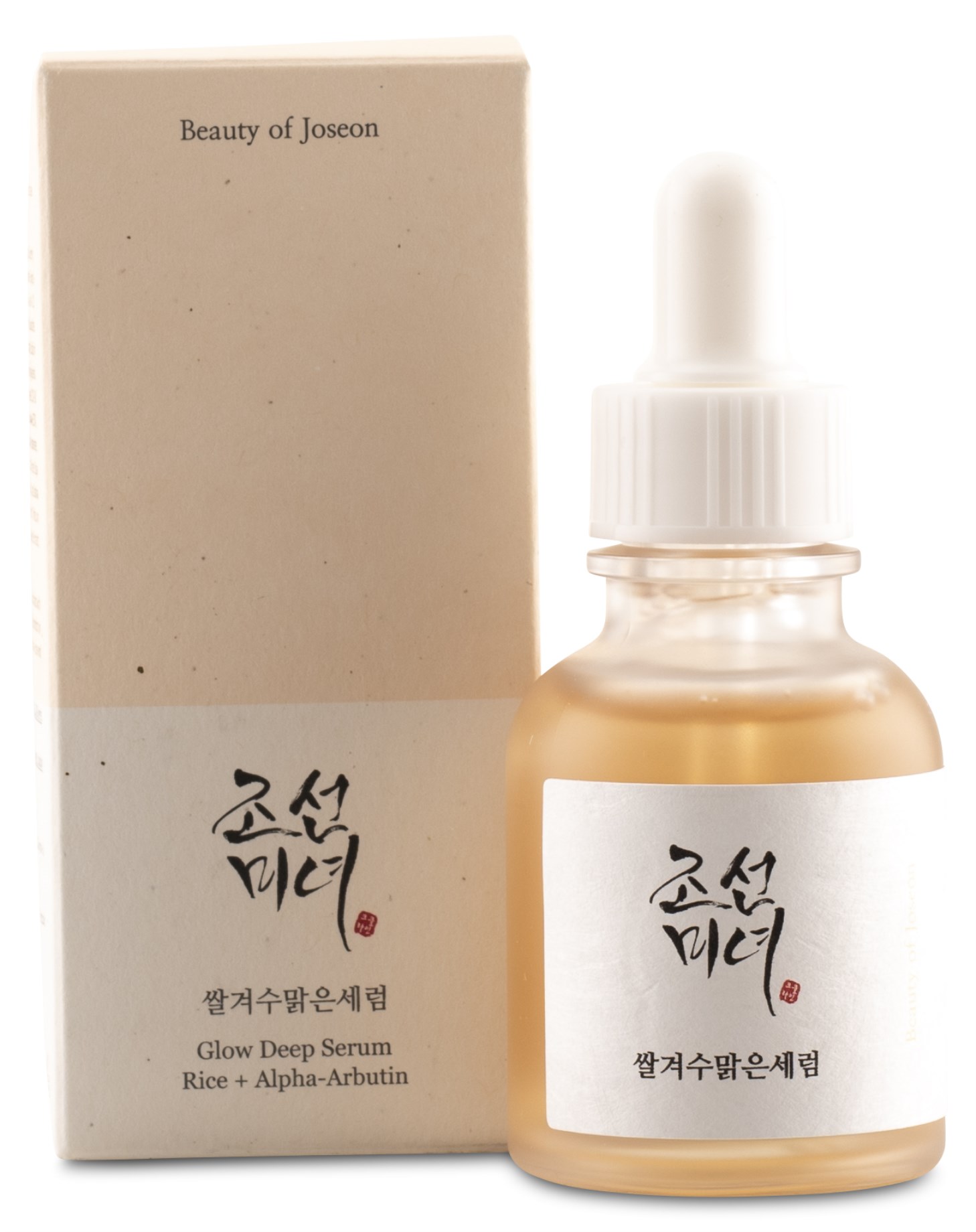 Glow Deep Serum: Rice + Alpha Arbutin från det koreanska hudvårdsmärket Beauty of Joseon är ett återfuktande serum med 68 % riskli-vatten och 2 % alpha-arbutin. Riskli-vatten arbetar lugnande för huden och hjälper huden att hålla sig återfuktad. Alpha-arbutin ljusar upp huden och arbetar mot hyperpigmenteringar och mörka fläckar. Serumet innehåller även niacinamid som är återfuktande, uppljusande och kan arbeta mot pigmenteringar.