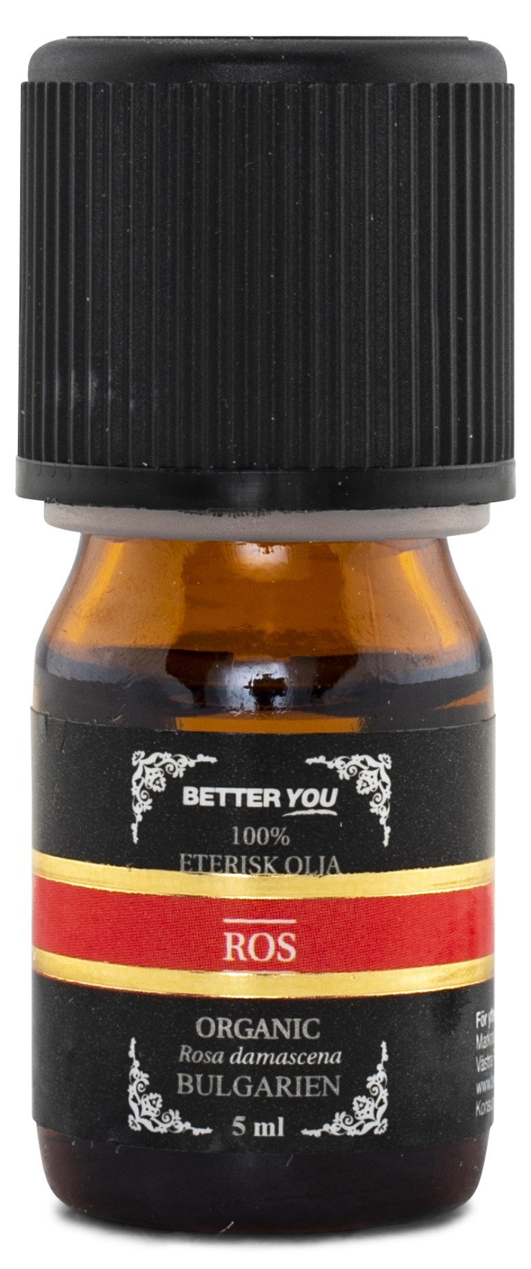 Better You Eterisk Rosolja är en eterisk olja från rosen Rosa Damascena som är en av de finaste och exklusivaste rossorterna. Oljan har en varm, söt och mycket blommig doft. Rosolja är perfekt att använda i aromaterapi, parfymer och i dusch- och hudvårdsprodukter. Rosolja sägs även vara bra vid oren hy och vid aromaterapi sägs det att oljan verkar lugnande och balanserande.
