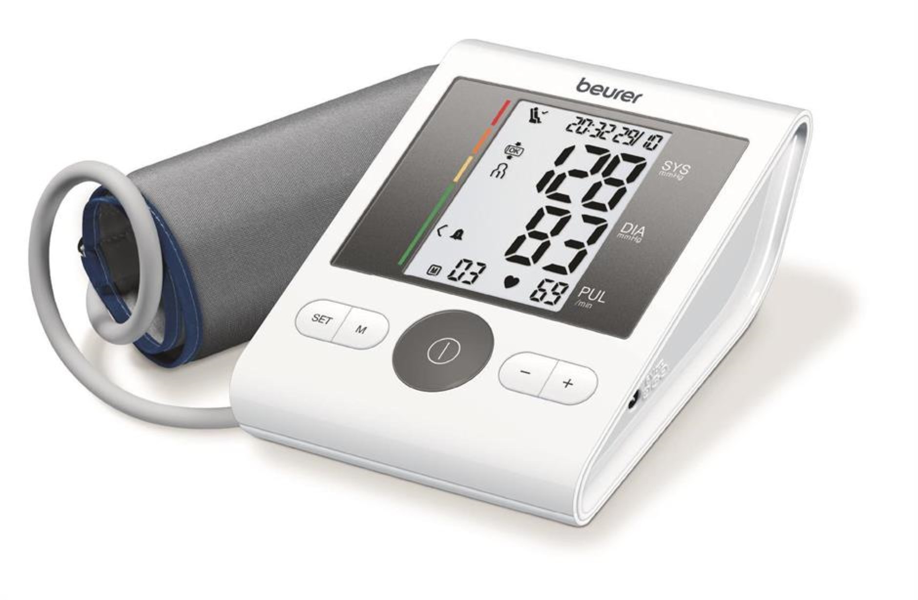 Med Beurer Blodtrycksmätare BM 28 kan du enkelt hålla koll på ditt blodtryck själv. Denna helautomatiska blodtrycksmätare sätts på överarmen där den mäter systoliskt och diastoliskt tryck samt puls. Den upptäcker och varnar även vid arytmi (oregelbunden hjärtrytm). Mätaren har 4 x 30 minnesplatser och ger dig möjlighet att se ditt genomsnittliga blodtrycksvärde av samtliga sparade blodtrycksresultat. Förvaringsväska och batterier medföljer.