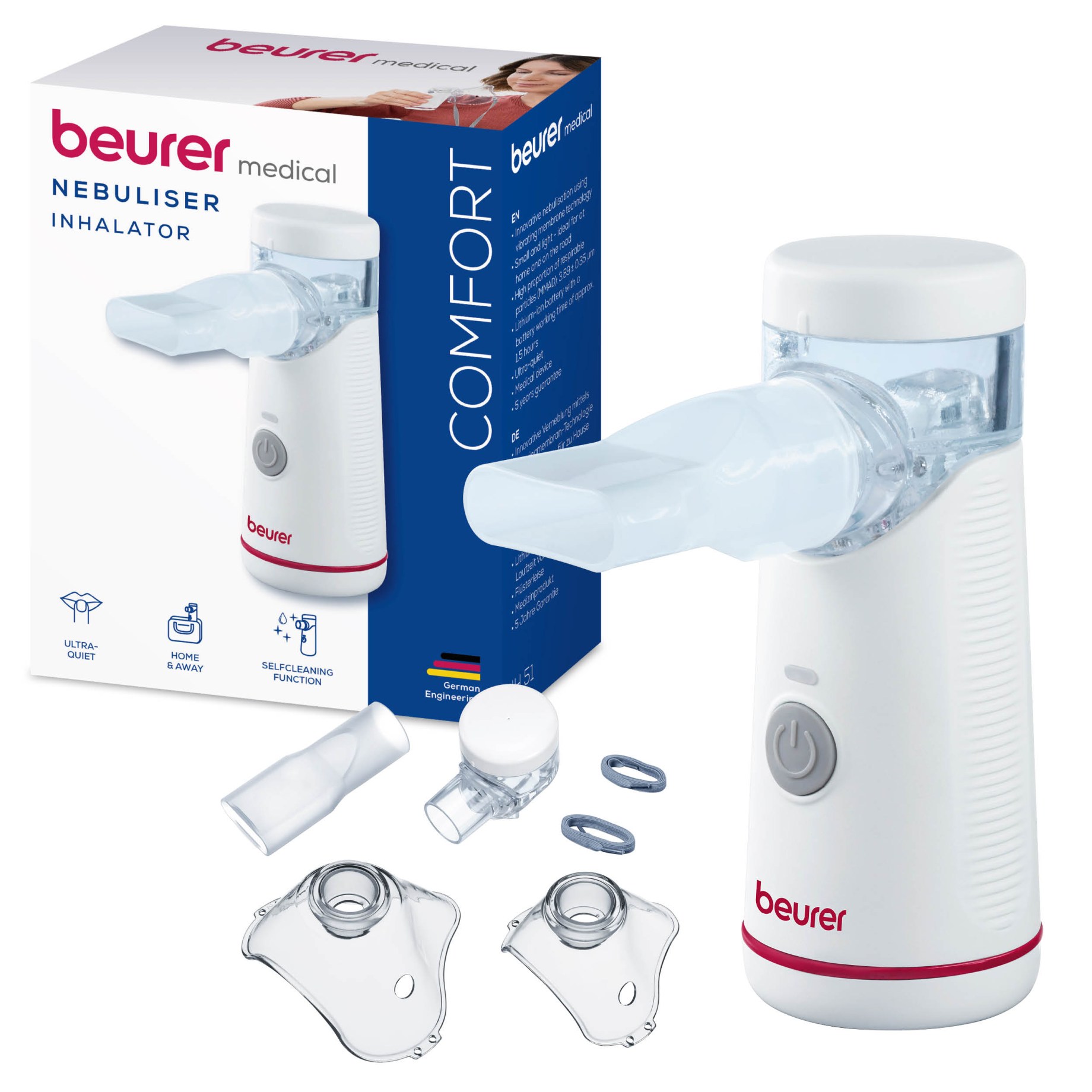 Inhalator Portabel IH 55 från Beurer är designad för snabb och effektiv behandling av övre och nedre luftvägarna och perfekt för användning vid astma, förkylning och luftvägssjukdomar. Denna nebulisator är tyst, snabb och lättanvänd vilket gör den smidig att använda för både vuxna och barn, och enkel att ta med på resande fot. Med en innovativ nebuliseringsteknik och hög nebuliceringskapacitet ger den snabb och effektiv inandning.