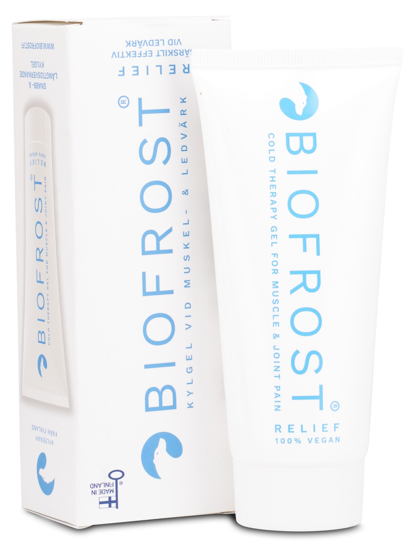 Biofrost Relief Tub är en naturlig kylgel för kylterapibehandling. Den ger snabb lindring vid ömmande muskler och skador såsom sträckningar, stukningar, ryggsmärtor och blåmärken. Kylgelen använder en kombination av effektiva, naturliga ingredienser: mentol, eukalyptus och pepparmynta, för allra bästa effekt. Ingredienserna sänker gradvis hudens temperatur med upp till 7 grader.