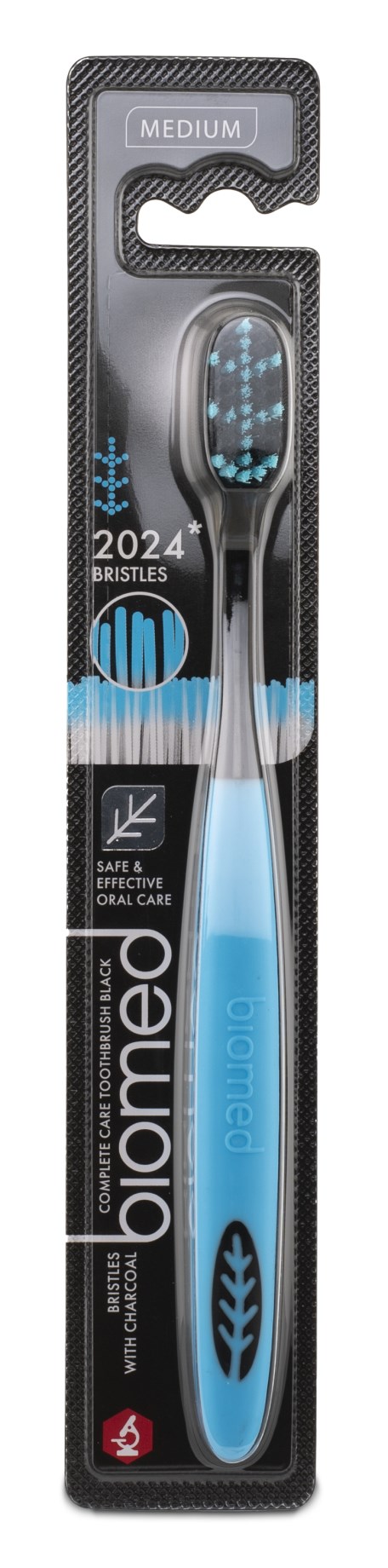 Biomed Charcoal Tandborste är perfekt för dig som vill rengöra dina tänder skonsamt och effektivt. Tandborstens strån är impregnerade med aktivt kol som ger en blekande effekt, samtidigt som borstningen görs på ett sätt som är milt för dina tänder. Borsten har en polerande effekt på din emalj, för en effektiv tandhygien.