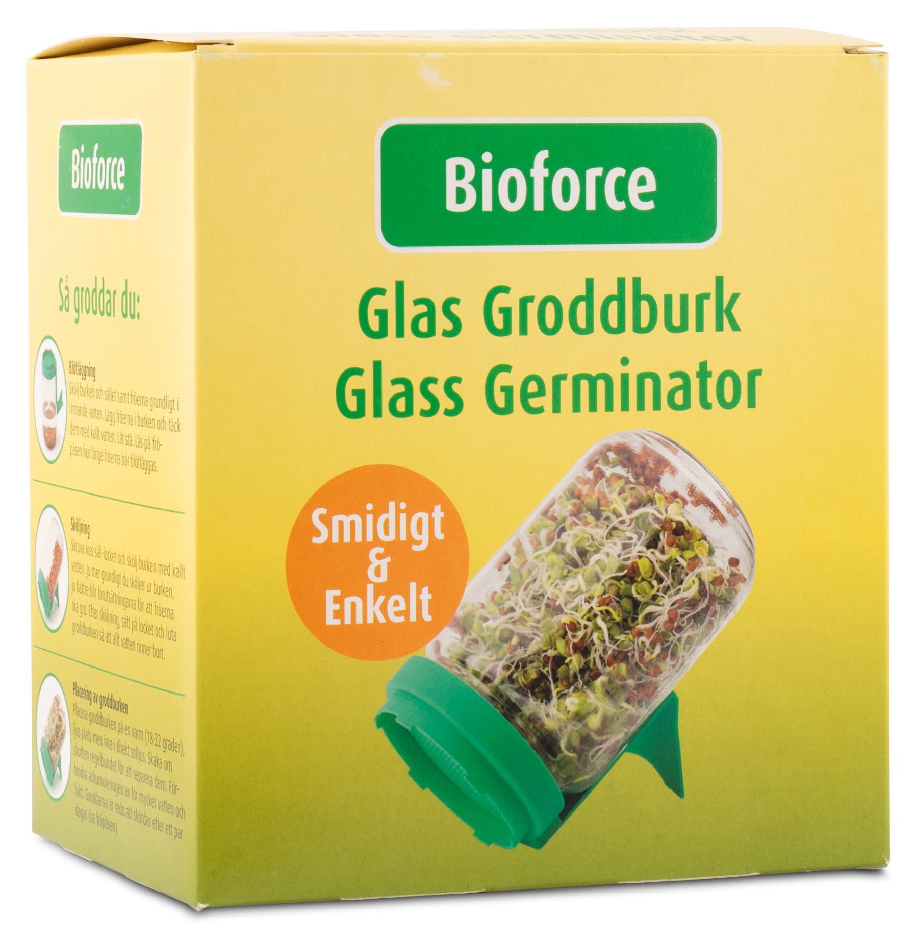 Längtar du efter en egen odling men har ont om plats, kan denna lilla groddburk i glas vara ett bra alternativ. På bara några dagar får du hemodlade groddar. Burken är tillverkad av miljövänligt glas och är lätt att använda och rengöra.