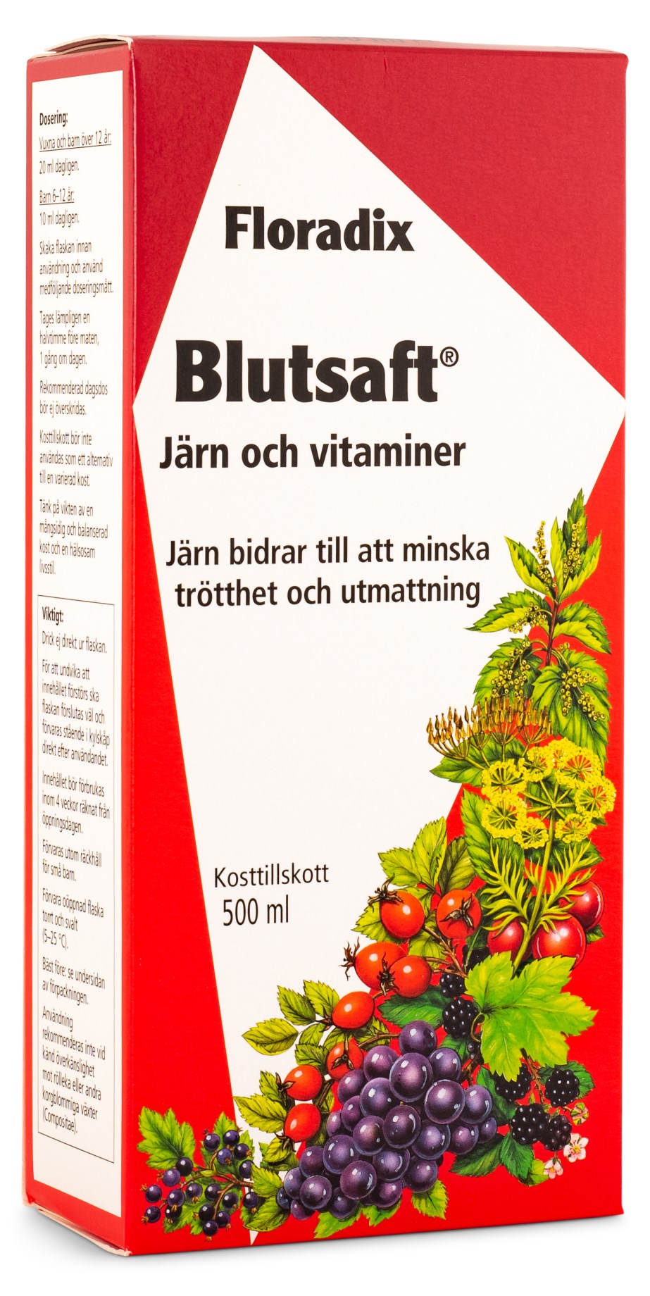 Blutsaft är en vitaminrik lösning med fokus på organiskt järn. Järnet tas snabbt upp i kroppen och bidrar till att balansera järnnivåerna. Järn bidrar till blodbildningen och medverkar till syretransporten i blodet. Blutsaft är ett smidigt flytande tillskott som är snällt mot magen och helt vegetabiliskt.