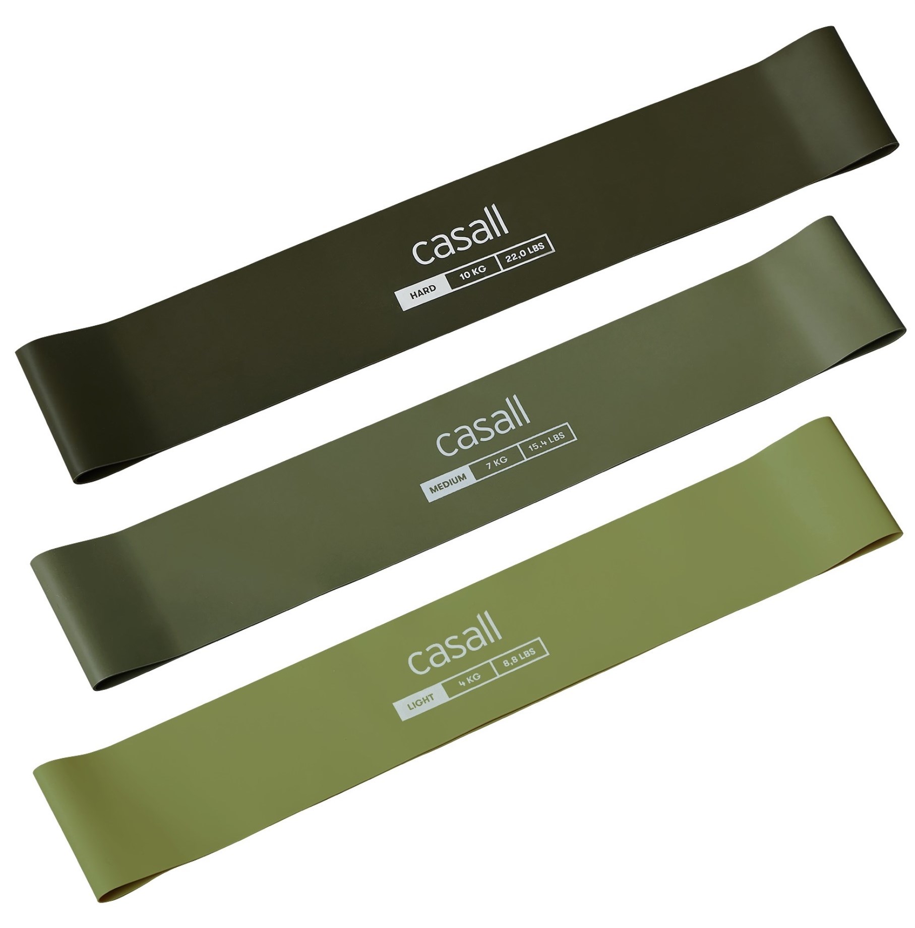 Casall Rubber Band är gummiband i 3-pack framtagna för träning, stretching och rehabövningar. De kommer i tre olika motståndsnivåer vilket gör dem till mångsidiga redskap med mängder av möjligheter för olika typer av motståndsträning. Banden är lätta att ta med i väskan eller förvara hemma för enkel och smidig hemmaträning. Gummibanden är tillverkade av naturligt gummi, vilket gör att färgvariationer kan förekomma.