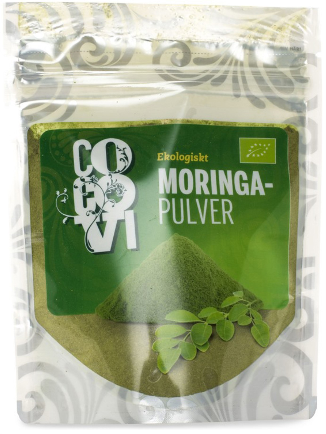 CocoVis moringapulver innehåller pulver från Moringaträdets blad vilket ger ett av de mest näringsrika pulver som finns. Bladen skördas då de är som mest energirika och torkas sedan direkt för att alla dess näringsämnen skall finnas kvar. Moringaträdets blad är väldigt speciella eftersom de innehåller över 90 olika näringsämnen såsom vitaminer, mineraler, antioxidanter, omega-fetter och dessutom är de laddade med protein.
