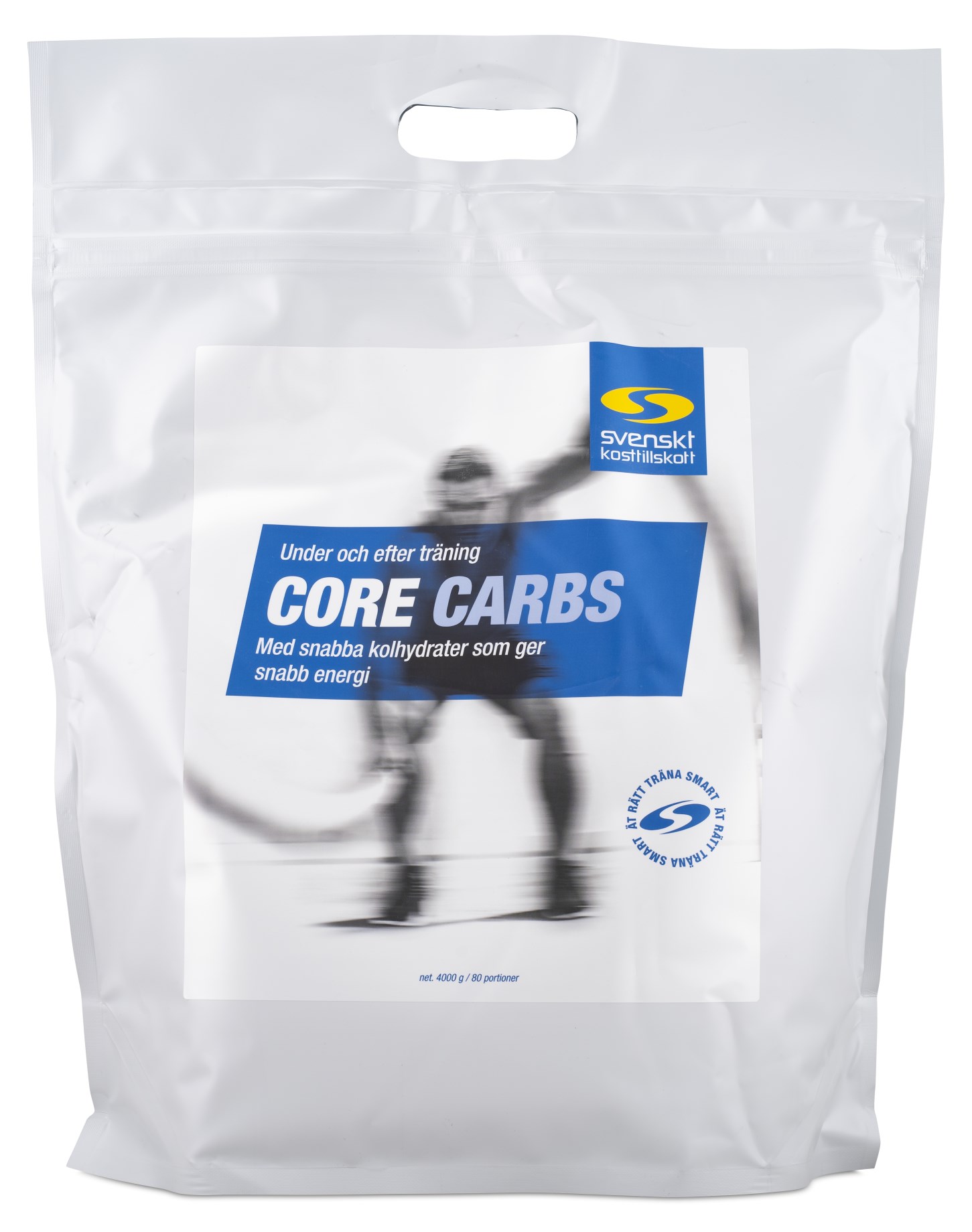 Core Carbs består av ren maltodextrin, kolhydrater som tas upp mycket snabbt av kroppen och bidrar till återhämtning under och efter träning. Maltodextrin är redan förspjälkat och behöver inte brytas ned i kroppen utan tas upp omedelbart och fyller på energilagren. En stor fördel med maltodextrin i jämförelse med andra vanligt förekommande kolhydrater i sportdryck är att det kan blandas i högre koncentrationer utan att orska magproblem. Upp till cirka 20 % av drycken kan bestå av maltodextrin, vilket underlättar om du inte vill ha med dig mycket vätska. Använd Core Carbs för att blanda din egen sportdryck eller gainer.