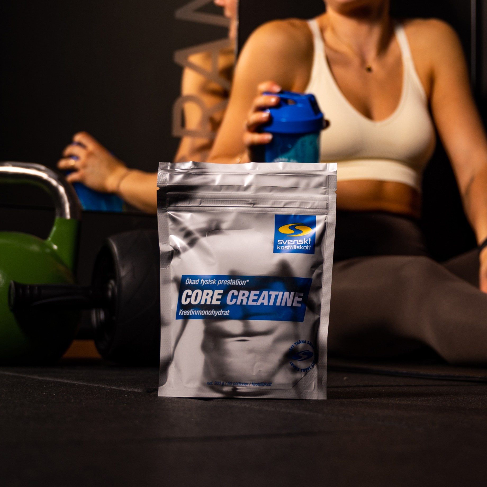 Kreatin är ett ämne som underlättar kroppens förmåga att omvandla lagrad energi till rörelseenergi. Det finns naturligt i kosten och produceras från aminosyrorna i protein som vi får i oss genom maten. Kreatin finns i höga halter i kött och fisk, men för att få de prestationshöjande effekterna som är förknippade med kreatin måste vi äta stora mängder av dessa livsmedel. Till exempel innehåller en portion Core Creatine lika mycket kreatin som cirka 1,5 - 2,5 kg rå fisk, beroende på fiskarten. Att få i sig denna mängd kreatin genom kosten är inte alltid praktiskt, vilket har gjort kosttillskott till ett populärt tillskott att använda.