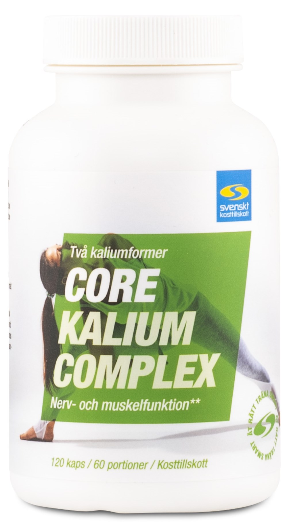 Core Kalium Complex är ett högkvalitativt kosttillskott med mineralet kalium från två olika källor. Core Kalium Complex innehåller en kombination av kaliumcitrat och kaliummalat, som båda har en hög biotillgänglighet. Rekommenderad dosering är 2 kapslar per dag, vilket ger en elementär kaliummängd på 500 milligram.