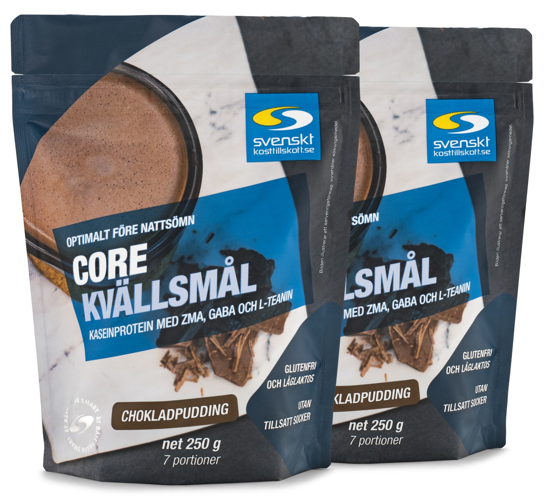 Core Kvällsmål är en optimal måltid före nattsömn, med långsamt kaseinprotein och en mix av GABA, ZMA och L-teanin. Ett perfekt kvällsmål för bästa förutsättningar för en god nattsömn samtidigt som du lätt undviker småätande på kvällen. Core Kvällsmål blandar du enkelt till en god shake som du dricker innan du går och lägger dig, med en härlig smak av chokladpudding eller karamellkräm.