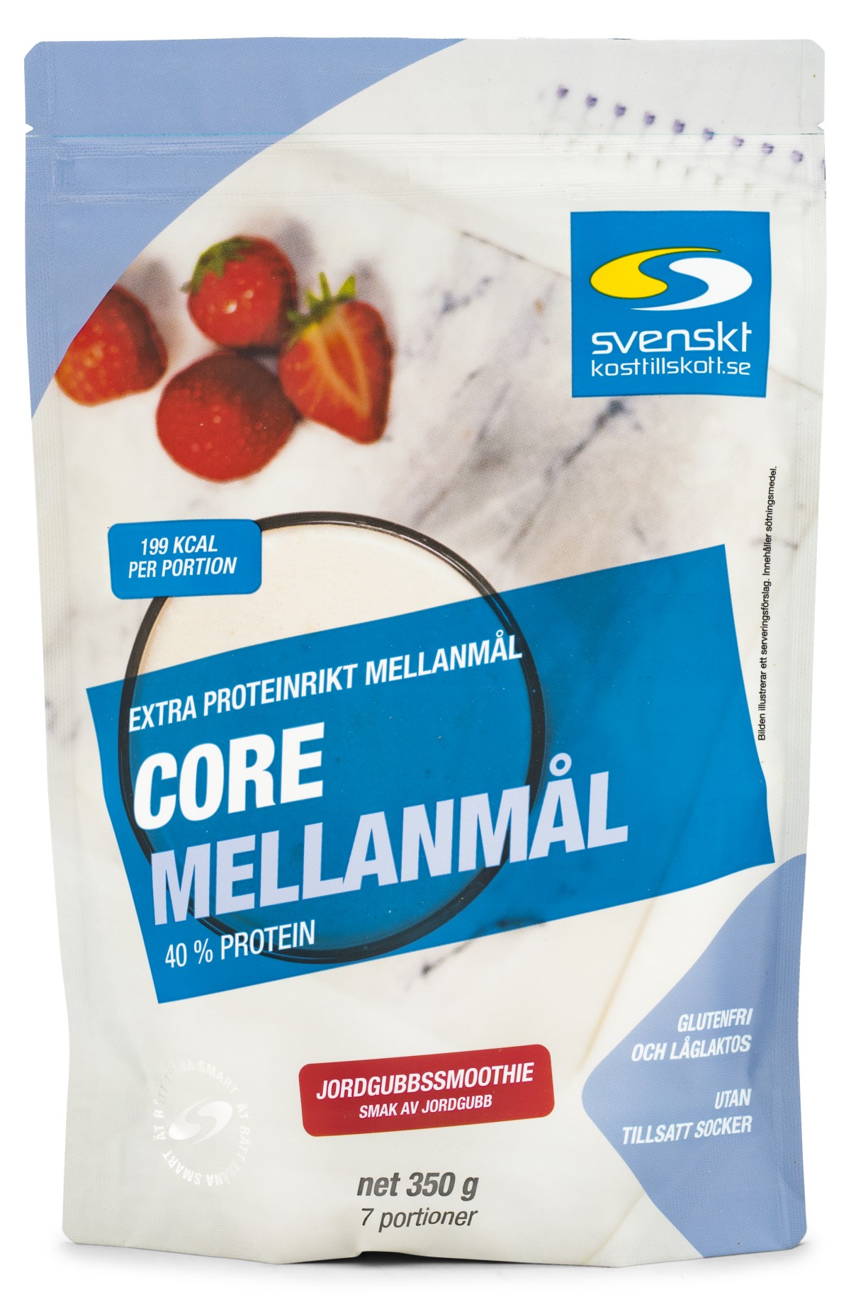 Core Mellanmål är den smidiga shaken som du enkelt blandar ihop med antingen vatten eller mjölk. Den har en perfekt balans av kvalitativt protein och kolhydrater, samt näring från frukt och bär. Ett komplett mellanmål när du värdesätter såväl näringsinnehåll som tid. Utmärkt när du annars skulle valt ett sämre och mindre näringsrikt alternativ.