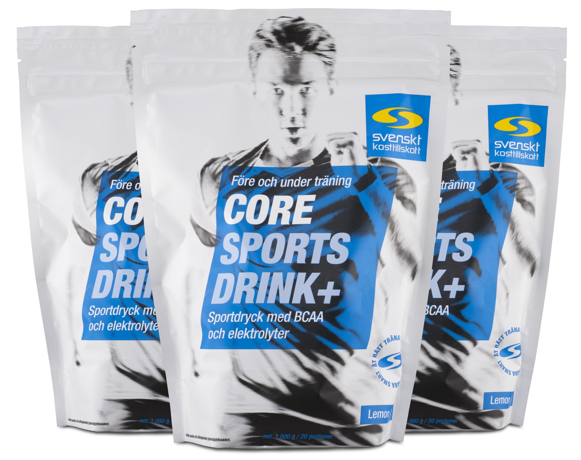 Core Sports Drink+ är en sportdryck i pulverform som innehåller snabba kolhydrater i form av maltodextrin och elektrolyter, som hjälper till att bibehålla uthållighetsprestationen vid långa träningspass där uthållighet är det viktigaste. Sportdrycken innehåller dessutom BCAA (leucin, valin och isoleucin) som har en roll för muskeluppbyggnaden och bibehållandet av befintlig muskelmassa. Produkten har en fräsch och god lemon-lime-smak, och sötas med hjälp av steviolglykosider som deriveras från steviaplantans gröna blad.