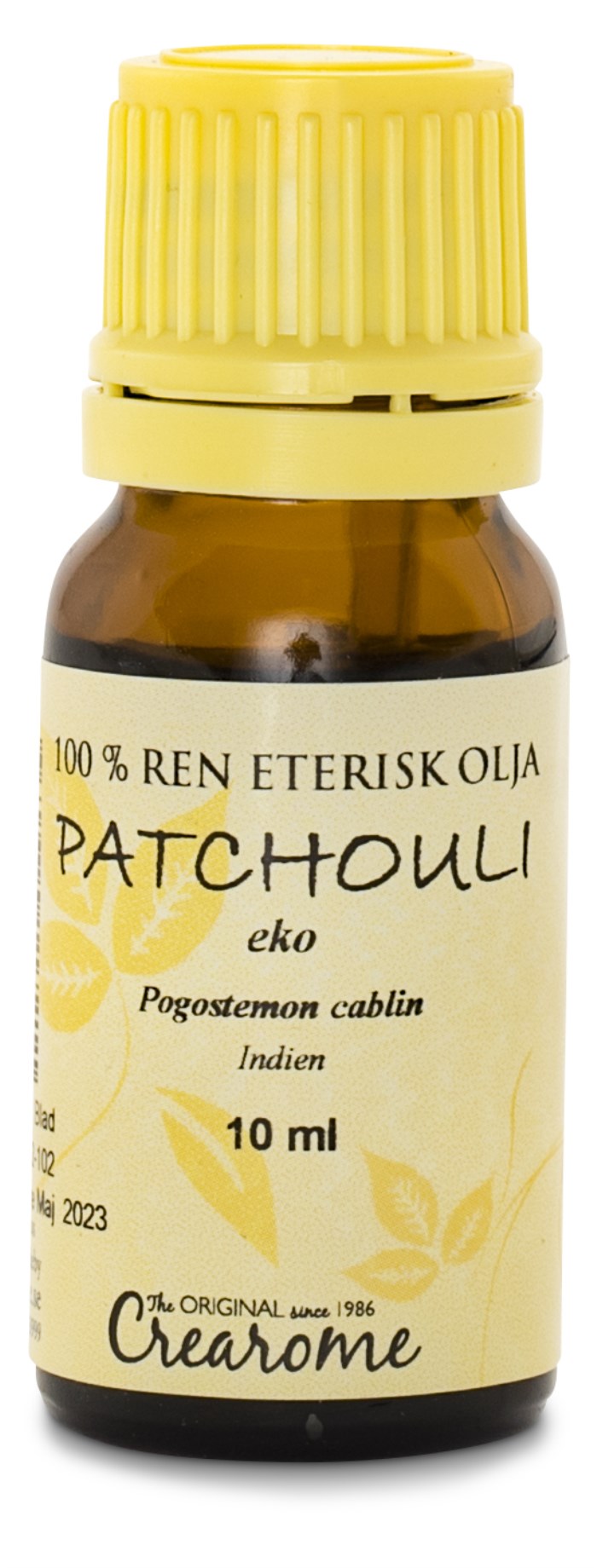 Patchoulioljans doft är unik och kan närmast beskrivas som varm och jordig. Patchoulioljan utvinns från växtens blad, och Crearomes patchouli kommer från ekologiska växter.