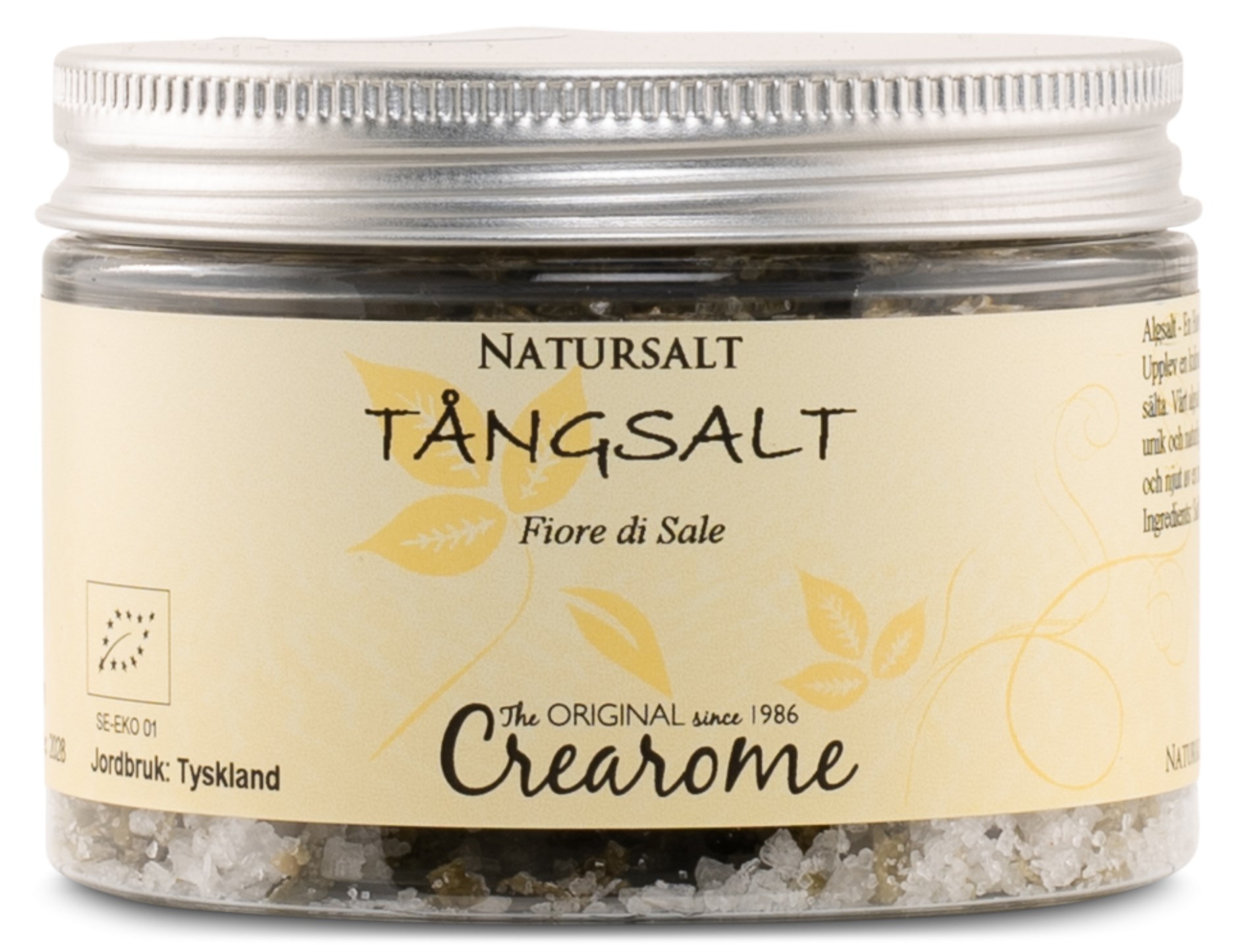 Crearome Tångsalt Eko är ett algsalt som ger dina rätter en unik och god smak. Saltet har en härlig kombination av havets friskhet och sälta. Det utvinns med omsorg från de renaste havsområdena. De torra vindarna från Afrika som blåser över den nordvästra sicilianska kusten, tillsammans med den intensiva sommarsolen, resulterar i naturlig avdunstning av havsvatten. Detta skapar ett havssalt som är rikt på magnesium och kalium. Saltet kan, förutom att användas i matlagning, även användas i hemmagjord skrubb och i fotbad.