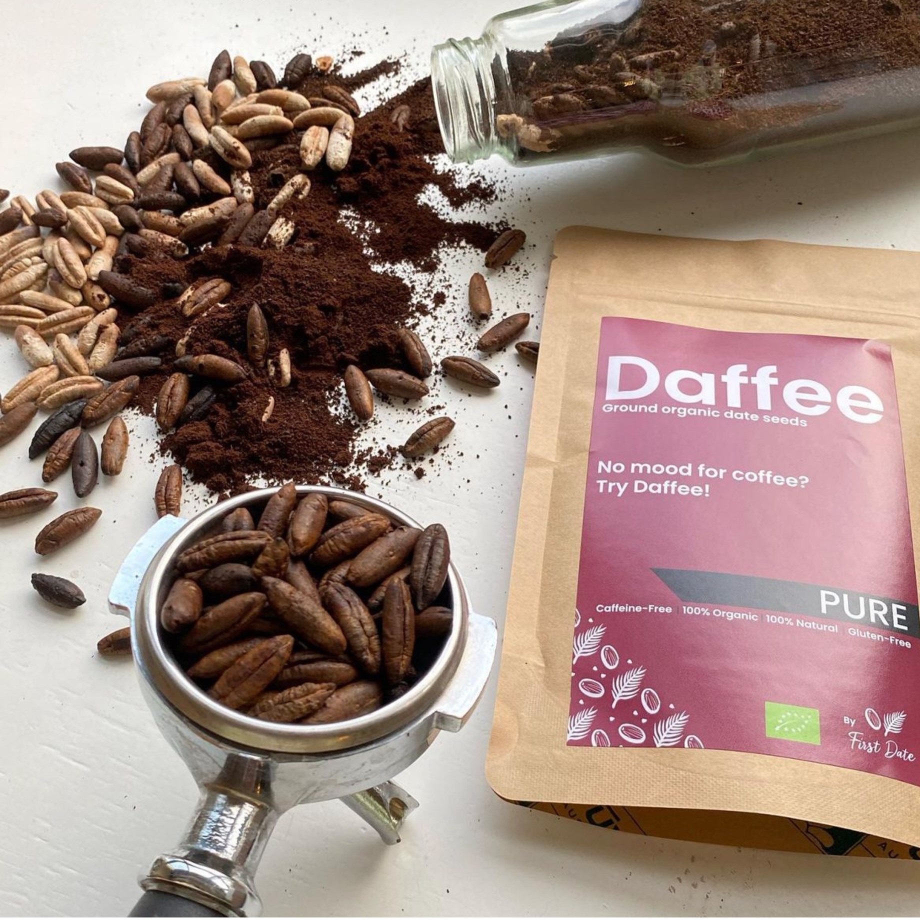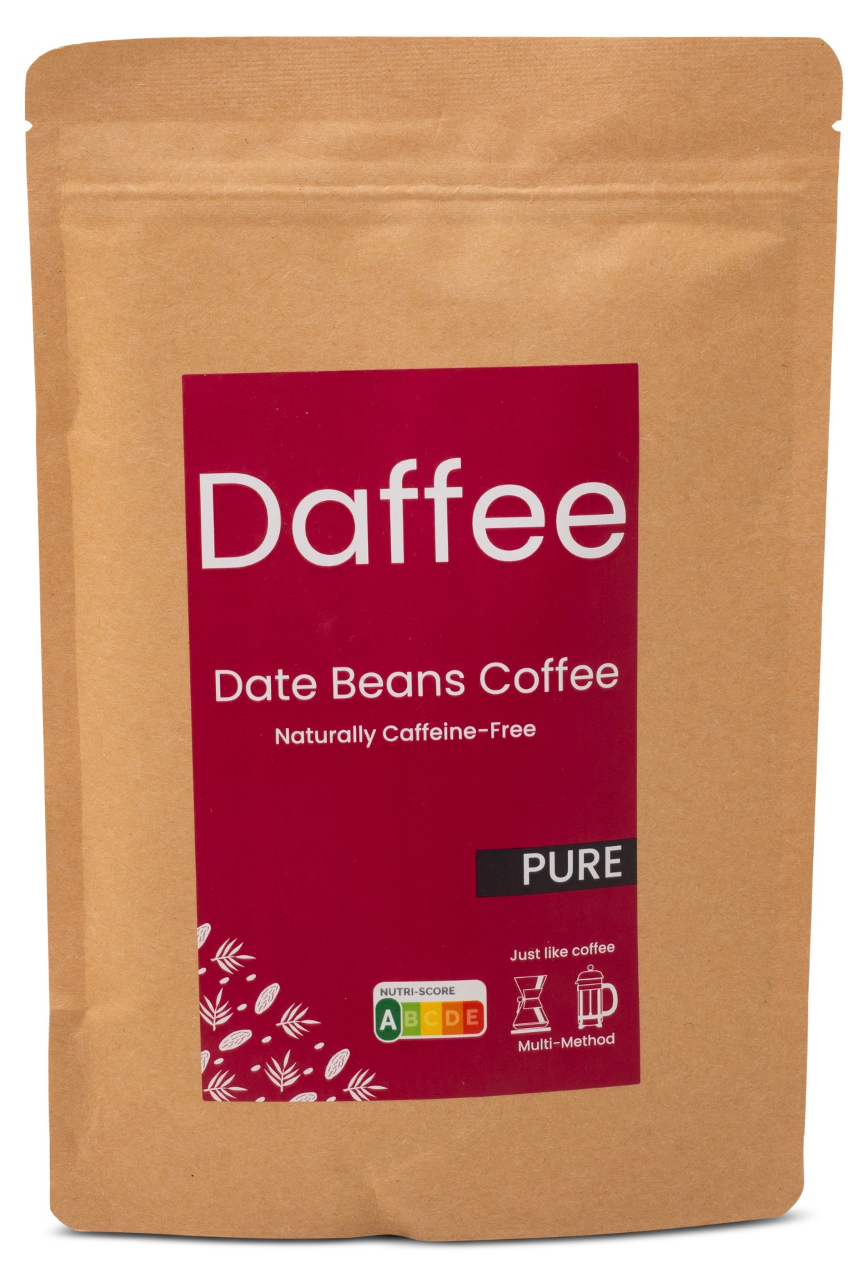 Koffeinfritt Dadelkaffe från Daffee är ett helt koffeinfritt kaffe gjort på rostade och malda ekologiska dadelkärnor. Kaffe gjort på dadlar ger ett smakrikt och aromatiskt kaffe, som bryggs precis som vanligt kaffe. Dadelkaffet är dessutom naturligt rikt på antioxidanter, järn, fibrer och viktiga mineraler. Eftersom kaffet är koffeinfritt behöver du inte oroa dig över att inte kunna sova, utan du kan njuta av en god kopp kaffe när som helst.