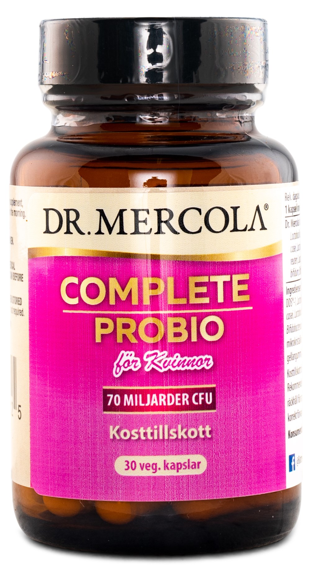 Dr Mercola Complete Probio for Women är ett perfekt tillskott för mage och tarmar med sitt innehåll av 10 olika bakteriestammar, inklusive långvariga L. acidophilus DDS-1. Tillskottet innehåller även tre Lactobacillus-stammar för att stödja kvinnors speciella behov och hälsa: Lactobacillus paracasei, Lactobacillus reuteri och Lactobacillus gasseri. Genom att ge näring till tarmfloran stöds och balanseras viktiga funktioner i kroppen. Ta hand om din mage med goda bakterier!