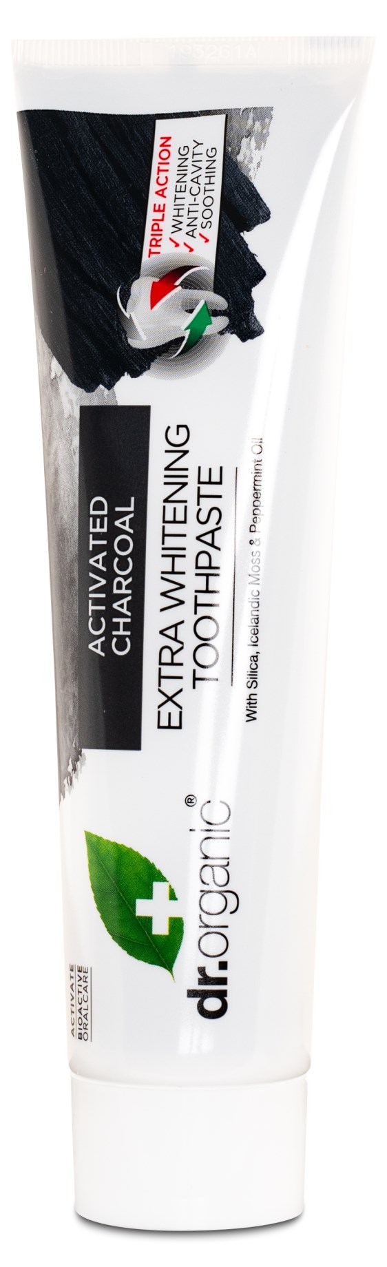 Dr Organic Tandkräm Aktivt Kol renar och skyddar dina tänder med aktivt kol, en unik ingrediens som ofta används för rengöring och blekning. Aktivt kol används i hudvårdsprodukter tack vare dess renande, välgörande och absorberande effekt. Med en väl sammansatt blandning av bioaktiva, naturliga och ekologiska växtextrakt har Dr Organic framställt en rengörande tandkräm med aktivt kol från hållbart odlad ek som både skyddar och rengör dina tänder. Tandkrämen innehåller flour.