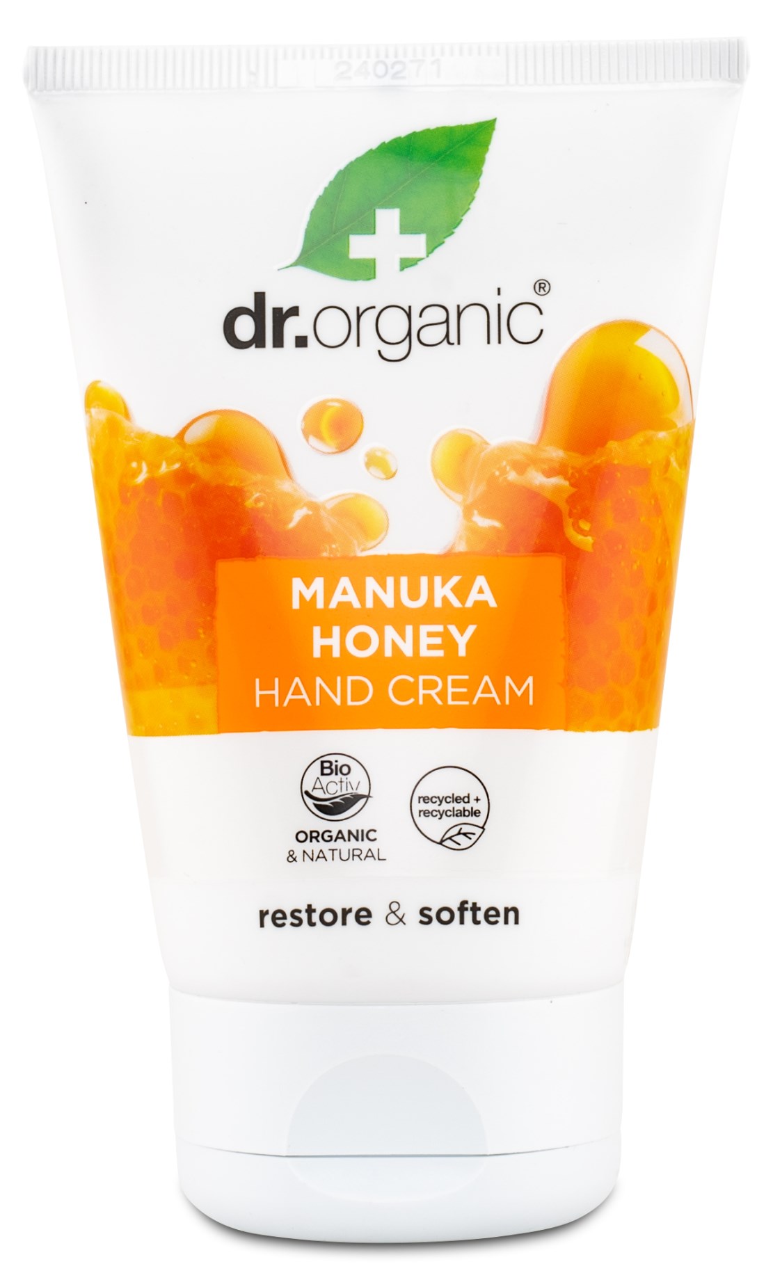 Dr Organic Manuka Honung Hand & Nagelkräm är en handkräm med ekologisk manukahonung, aloe vera, oliv- och solrosolja samt propolis och vitamin E. Dessa ingredienser ser till att återfukta händer och nagelband på djupet och lämnar efter sig ett silkeslent resultat. Manuka Honey Hand & Nail Cream från dr. organic innehåller ingredienser som inte bara återfuktar nariga och torra händer den lugnar irriterad hud samt återställer hudens elasticitet.
