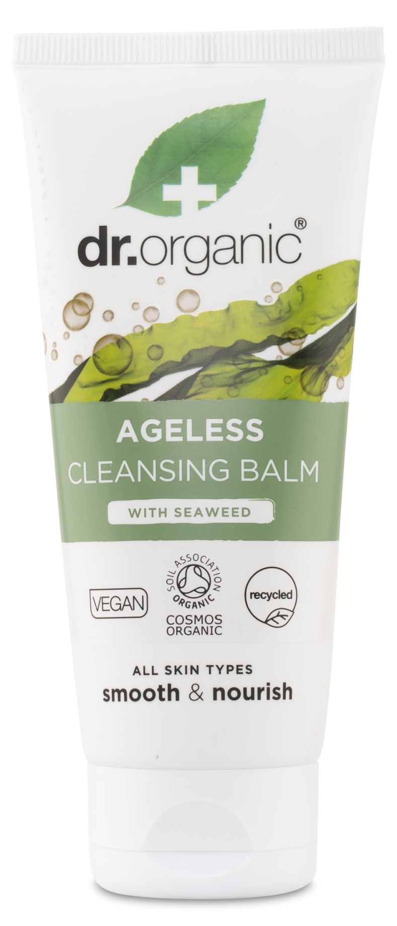 Seaweed Ageless Cleansing Balm från Dr Organic är ett balm som rengör och återfuktar ansiktet och tar bort smink och orenheter. Balmet är berikat med växtoljor och ekologisk tång som ger huden en långvarig återfuktning. Tången innehåller polysackarider som hjälper till att absorbera vatten och drar fukt till hudcellerna, vilket ger långvarig återfuktning.