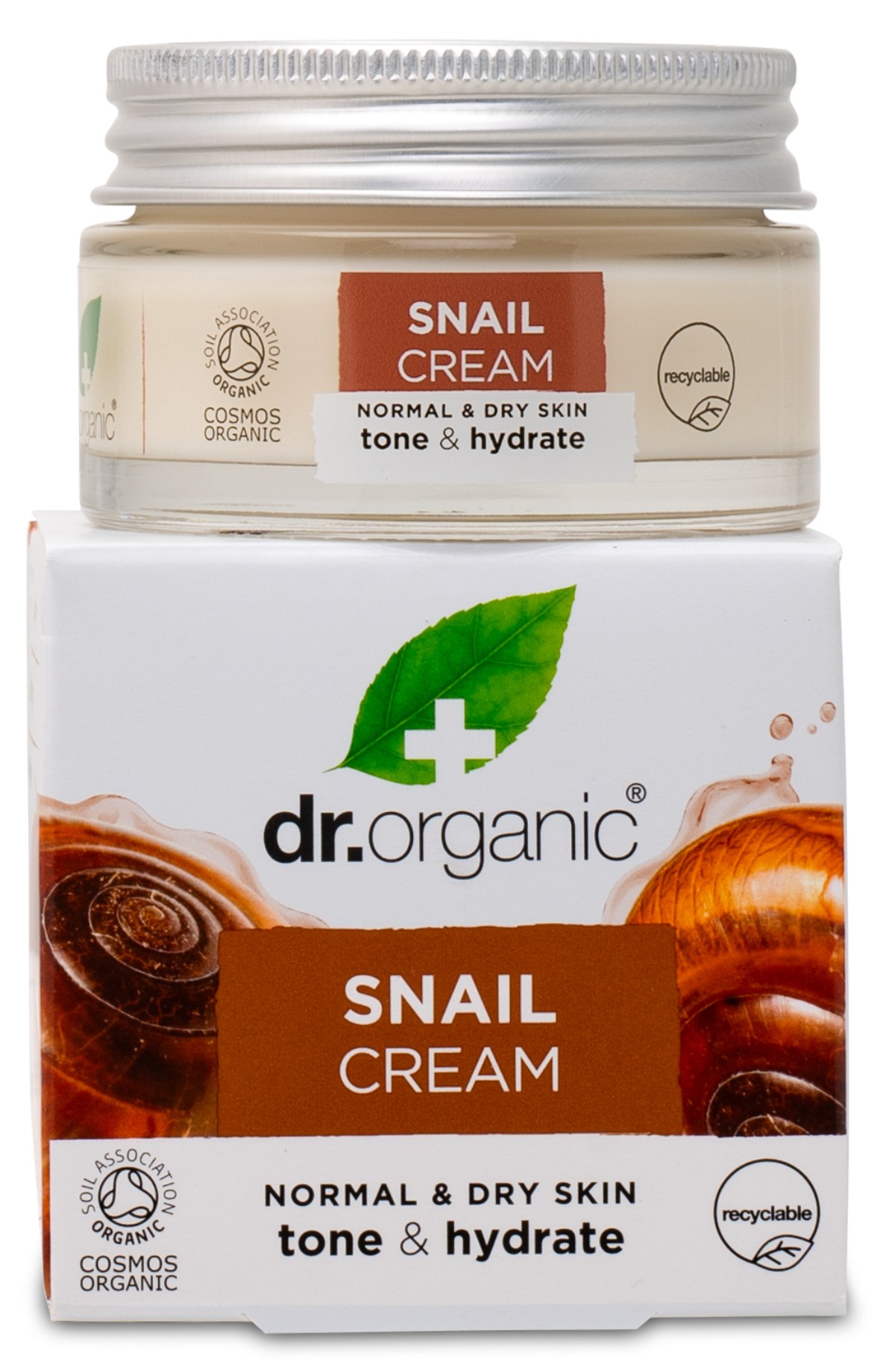 Snail Gel Cream från Dr Organic är en ekologisk och återfuktande kräm för ansikte och kropp vars aktiva ingrediens är sekretet från sniglar. Detta sekret tillverkas av sniglarna för att de snabbt ska kunna regenerera sina skal och hy vid eventuell skada. Snigelsekretet hjälper huden att förebygga rynkor samtidigt som det gör huden mycket mjuk.