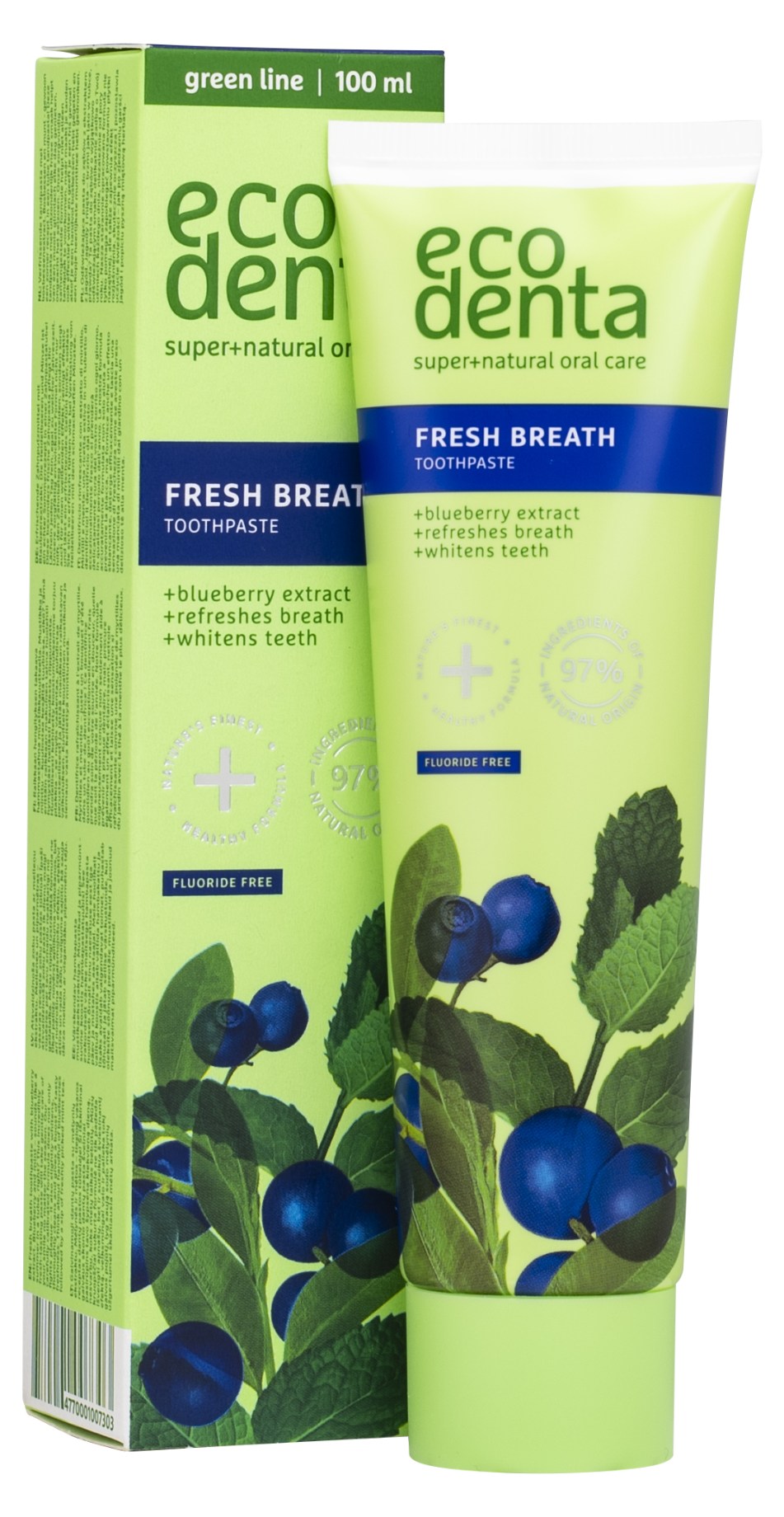 Ecodenta Expert Line Fresh Breath Toothpaste är en tandkräm för dig som vill ha en långvarig fräsch andedräkt! Formulan innehåller naturligt blåbärsextrakt som både fräschar upp och håller munnen ren med sina antibakteriella egenskaper. Rengör effektivt, tar bort plack och förebygger karies. Tandkrämen passar hela familjen!