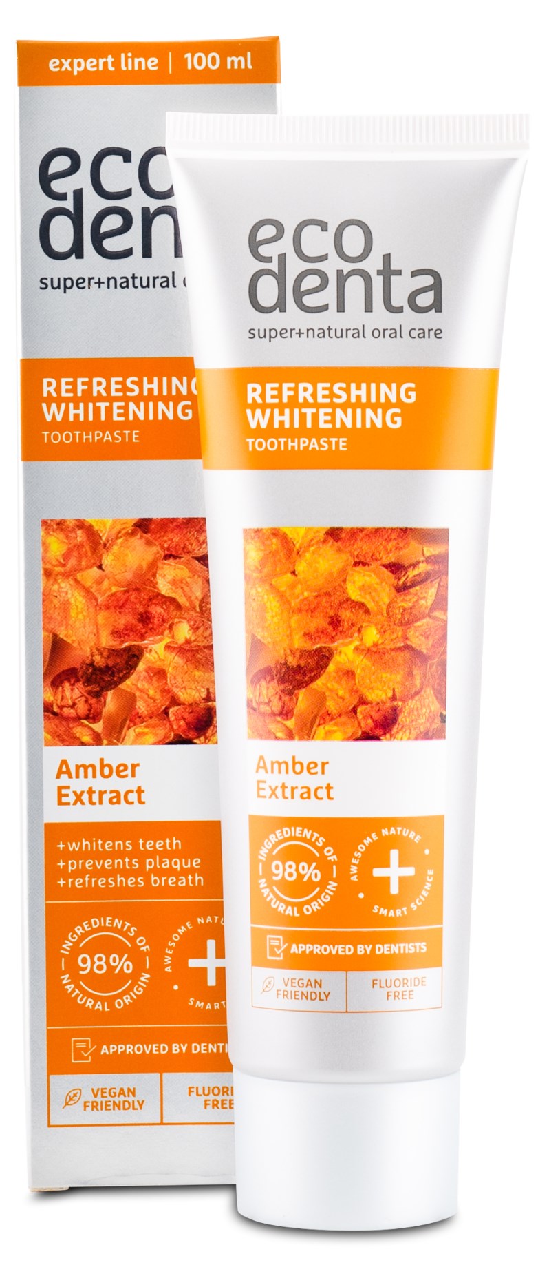 Ecodenta Expert Line Whitening Toothpaste är en vegansk tandkräm med den speciella ingrediensen bärnsten. Med en innovativ formula motverkar den missfärgningar och ger dig ett fräschare leende. Tillsatt xylitol bidrar till en normal salivproduktion som saktar ner plackbildningen. Använd dagligen för bäst effekt. Tandkrämen är fri från fluor.