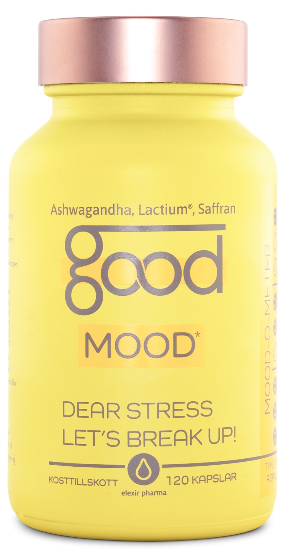 Ta det lugnt och hitta balans med Elexir Pharma Good Mood, ett kosttillskott som kan tas vid stressigare perioder. Med en unik formula vars bas består av örterna saffran, rosenrot och ashwagandha. Innehåller även Lactium® som är en patenterad bioaktiv peptid som kommer från råmjölk, närmare bestämt från mjölkproteinet kasein*. Saffransextrakt har en lång historia av traditionell användning för balans och lugn, medan ashwagandha och rosenrot är två adaptogener som anses bidra till att främja mentalt och fysiskt välmående. För en mer harmonisk och lugnare vardag!