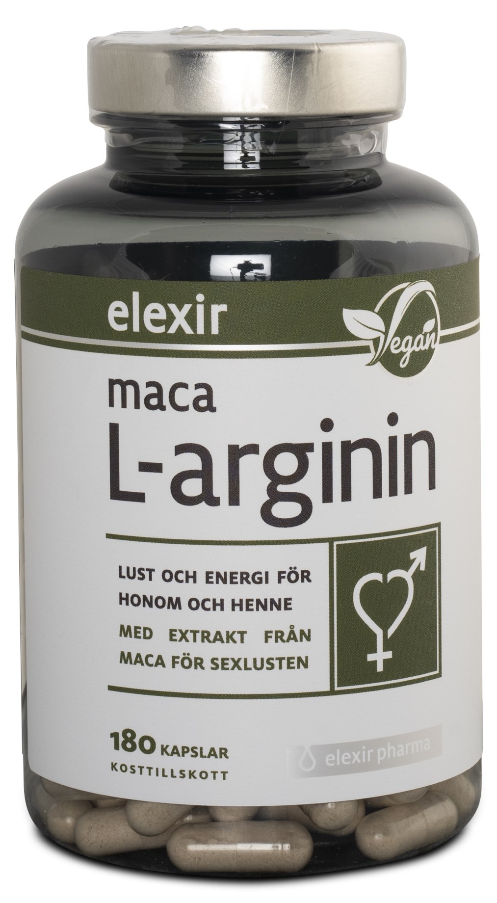 Ibland kan energinivåerna gå ner och lusten kännas låg men då kan ett kosttillskott som Elexir Pharma Maca L-arginin hjälpa dig. Kapslarna innehåller bland annat maca som är en energigivande näringskälla. Maca innehåller flera olika vitaminer, mineraler och antioxidanter. Maca tillsammans med L-arginin och övriga ingredienser i kapslarna underlättar för bildandet av kväveoxid som är en viktig del i att bibehålla blodcirkulationen i kroppens genitala delar. Detta ger i sin tur en lusthöjande effekt för både kvinnor och män. Du doserar enkelt Elexir Pharma Maca L-arginin genom att ta tre kapslar per dag tillsammans med måltid för att få en ökad lustkänsla. Kapslarna innehåller inga artificiella färger, smakämnen eller konserveringsmedel.
