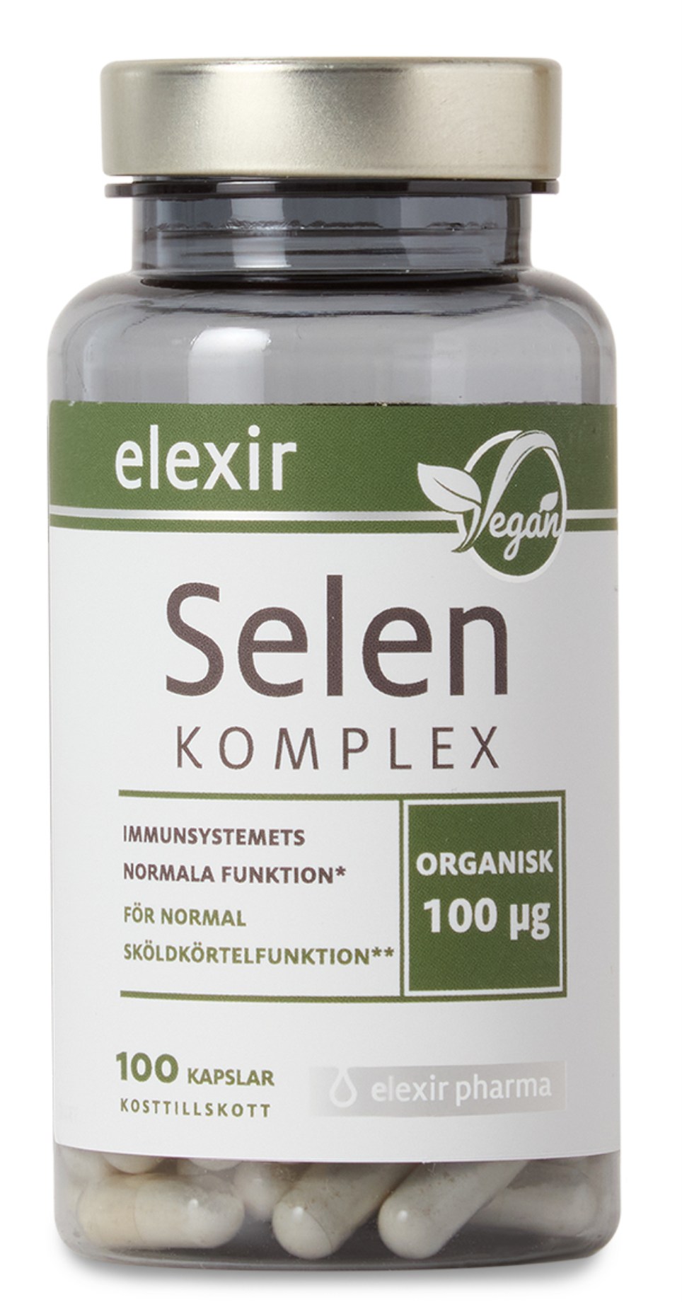 Elexir Pharma Selen Organisk innehåller selen från två organiska källor – selenjäst och selenmetionin. Den organiska formen gör mineralet lätt för kroppen att ta upp och använda. Selen är ett viktigt mineral med flera viktiga roller i kroppen. Det bidrar till immunsystemets normala funktion, normal sköldkörtelfunktion och normal spermatogenes hos män. Selen behövs även för att bibehålla normalt hår och normala naglar. Dessutom fungerar selen som en antioxidant som hjälper till att skydda kroppens celler mot oxidativ stress.