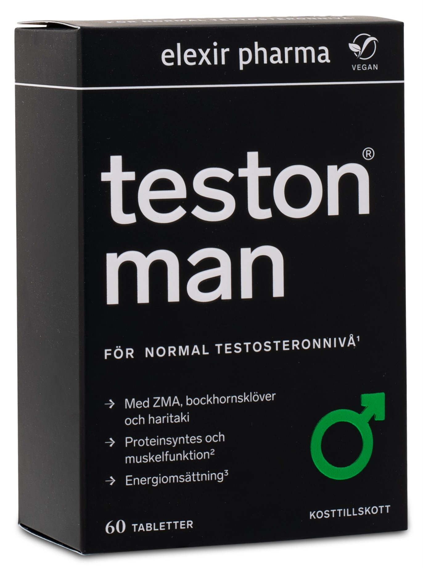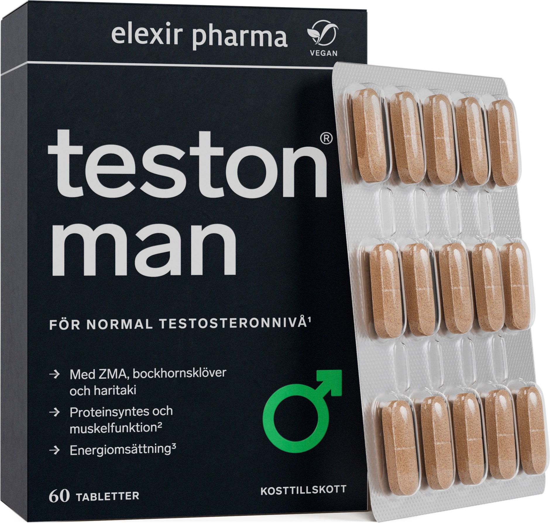 Elexir Pharma Teston Man Balans är ett specialutvecklat tillskott som riktar sig till män. Tabletterna innehåller bland annat zink som bidrar till normala testosteronnivåer samt till normal fertilitet och reproduktion och magnesium som är ett välkänt tillskott för normal muskelfunktion och proteinsyntes. De innehåller dessutom vitamin B6 som bidrar till normal energiomsättning, minskad trötthet och utmattning samt till reglering av hormonaktiviteten. Detta gör att Elexir Pharma Teston Man Balans passar dig som vill ha ett mer balanserat mående och humör och samtidigt tillföra vitaminer och mineraler som har viktiga uppgifter i kroppen.