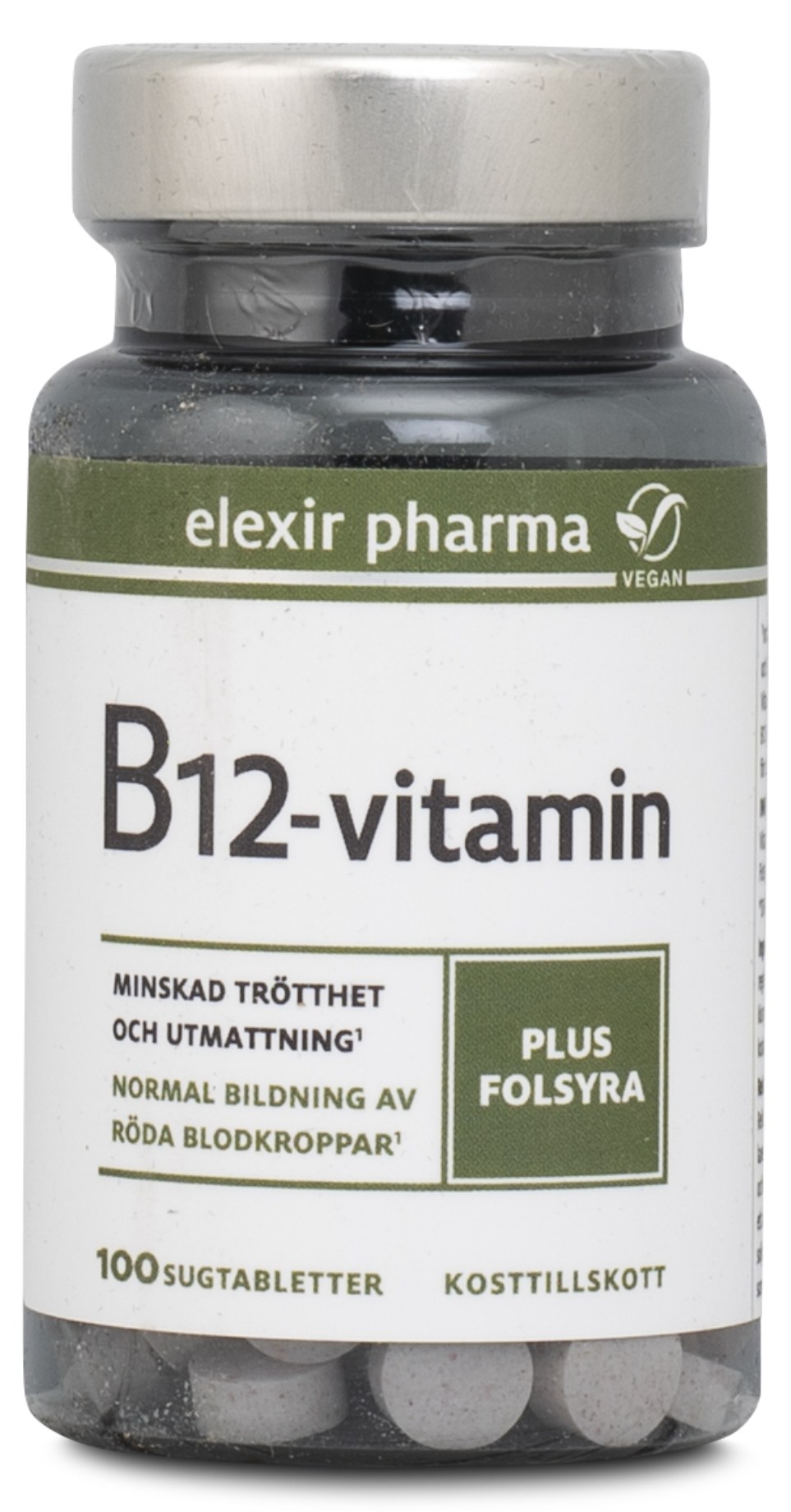 Elexir Pharma Vitamin B12 Vegansk är ett utmärkt kosttillskott för veganer, vegetarianer och alla andra som vill säkerställa sitt intag av B12-vitamin. Det innehåller aktiv B12 i form av metylkobalamin i kombination med med Quatrefolic® – en biotillgänglig form av folsyra som samverkar med vitamin B12. Vitamin B12 är viktigt för kroppens produktion av röda blodkroppar, som har en bred påverkan på kroppens funktioner. Vitaminet bidrar också till nervsystemets hälsa och stödjer bland annat en normal psykologisk funktion. I form av välsmakande sugtbletter som gör det lätt att få i sig.