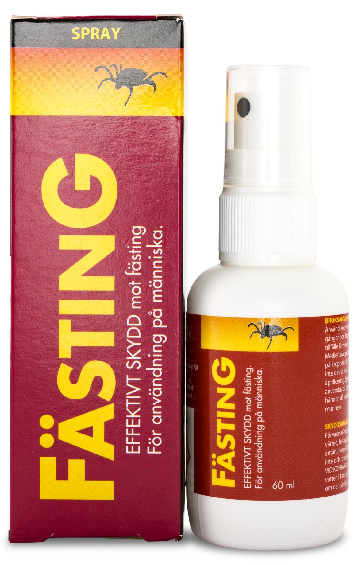 Fästingar är små leddjur som är nära besläktade med både kvalster och spindeldjur. För att utvecklas och genomgå sina olika faser så behöver fästingen suga blod. När en fästing biter oss människor så känns det knappt på grund av att de först sprutar in ett bedövande ämne. Under tiden som fästingen suger så kan den överföra sjukdomar som TBE och Borrelia till oss. Mot TBE finns ett vaccin och det är extra viktigt att du som bor i områden där det finns TBE vaccinerar dig. Då det gäller Borrelia så finns inget vaccin men du kan undvika smitta om du plockar bort fästingen så snabbt som möjligt. Det är därför väldigt viktigt att alltid leta efter fästingar så snart du vistats ute i skog och mark med högt gräs där fästingarna trivs. Använd också FästinG spray på utsatta områden som kring vrister och ben som inte täcks av kläder.