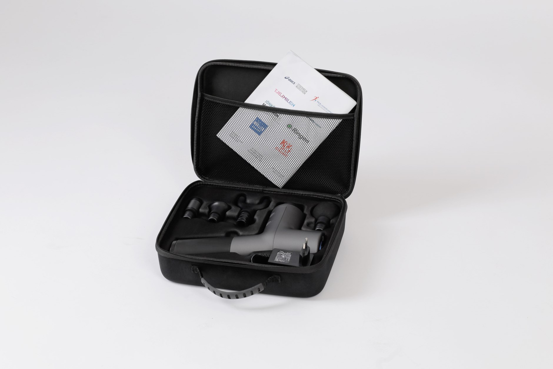 - Dra massagepistolens munstycke längs med muskelfibrernas riktning och i riktning mot hjärtat.