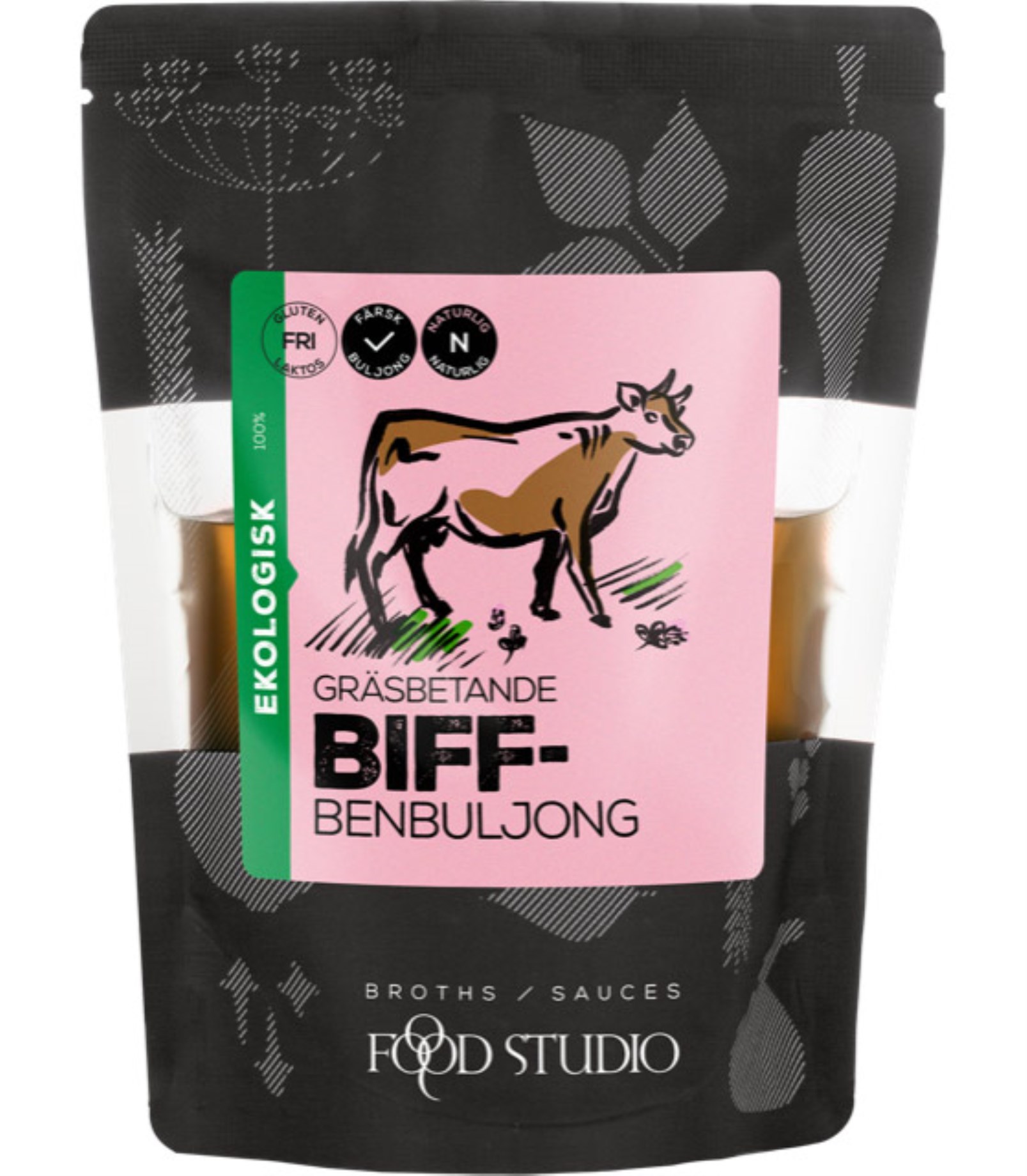 Food Studio Beef Bone Broth ger grytor, såser och soppor extra smak och fyllighet. Köttbuljongen är kokt från ekologiska ben från biff tillsammans med örter och ekologiska och välsmakande grönsaker. Råvarorna kommer från ekologiska gårdar i Estland och från gräsätande kor. Använd Beef Bone Broth som grytbas eller som smaksättning till dina favoriträtter.