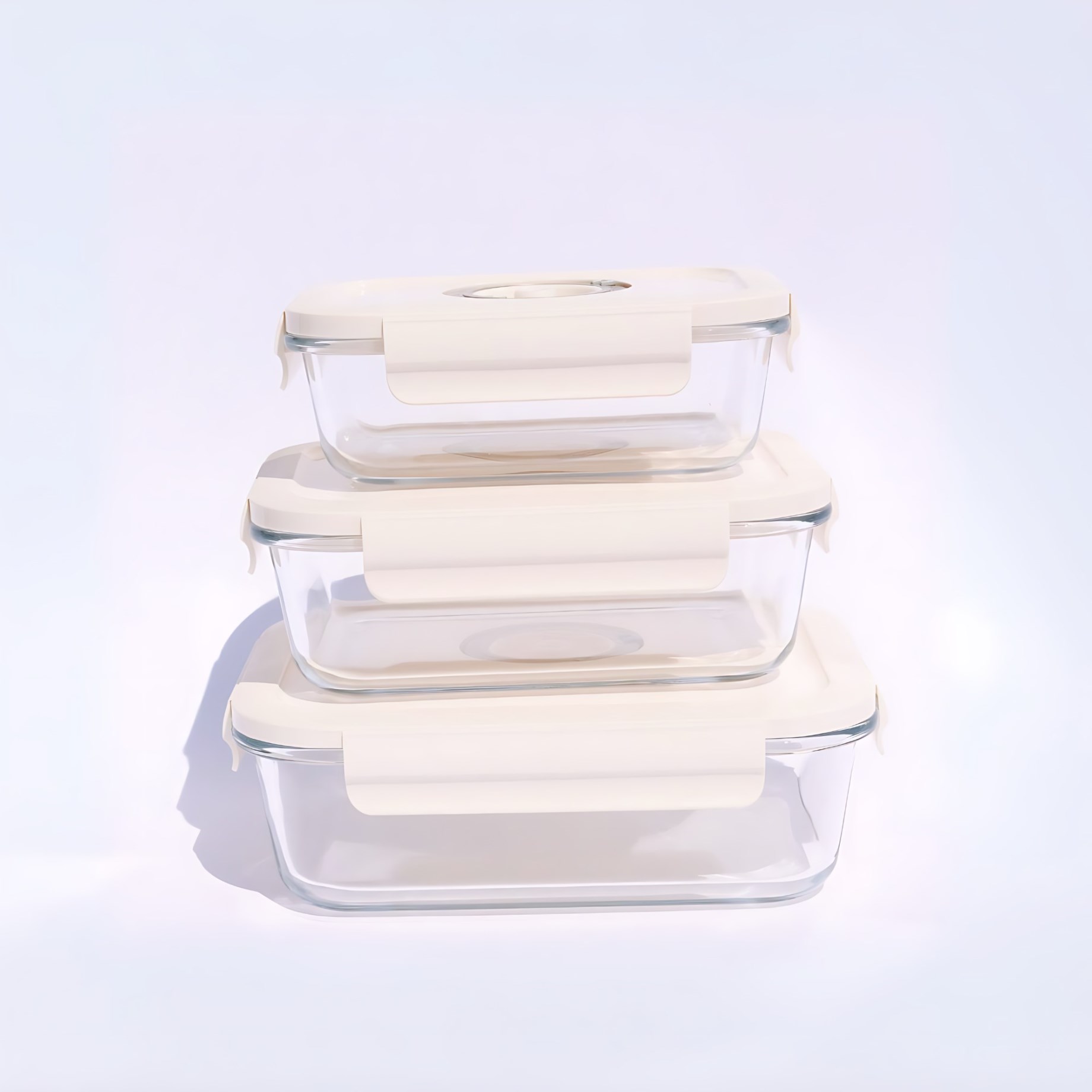 Miniatyrbild Foodecobox Vakuum Matlåda i Glas 3  i 1 Set, Rektangel, Vit