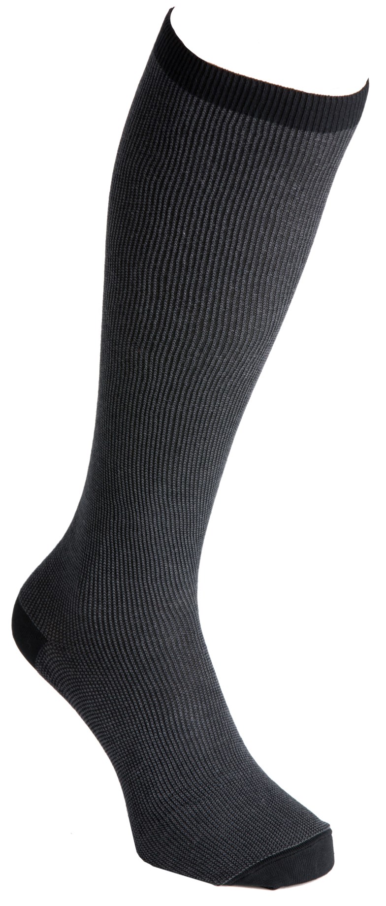 Funq Wear Herr Kompressionsstrumpor 15-18 är ett par funktionella stödstrumpor i 55 % ekologisk bomull, med graderad kompression som ger högst tryck runt anklar och lättare tryck längre upp på strumporna. Kompression ger en tryckande effekt som främjar blodcirkulationen och minskar därigenom risken för svullna fötter och fotleder, för bättre välbefinnande för benen. Funq Wear stödstrumpor har kompression i graden 15-18 mmHg, vilket mäter trycket som kompressionsmaterialet ger. Speciellt designad för män, och kan användas i alla typer av skor året runt. Extra skönt vid flygning eller långvariga stunder av sittande eller stående, där blodcirkulationen ibland kan bli lägre.
