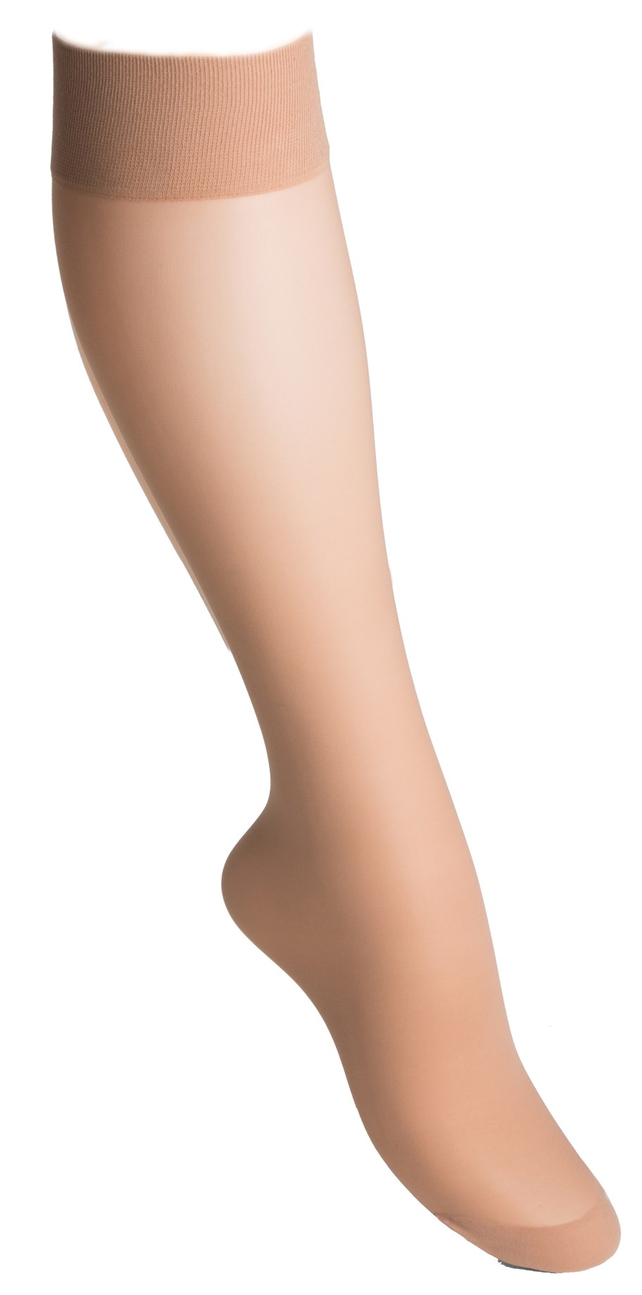 Stödstrumpor kommer i olika kompressionsgrad, vilket mäts i enheten mmHg. Dessa stödstrumpor i nylon har en kompressionsgrad på 15-18 mmHg, med högst tryck över anklarna och avtagande uppåt.