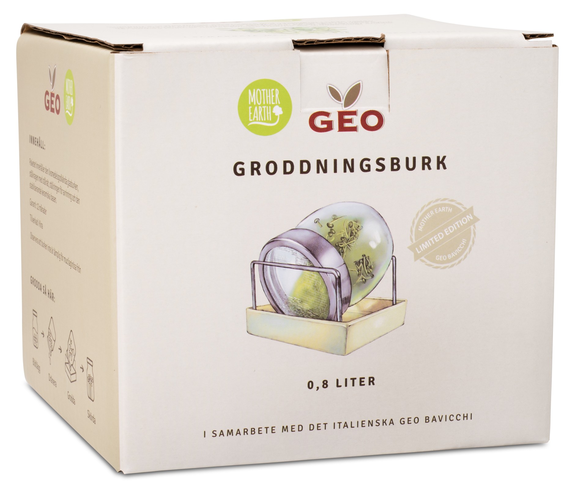 GEO Groddningsburk gör det lätt och smidigt att grodda hemma i köket. Groddburken är tillverkad i livsmedelsgodkänt glas och står i ett smart stativ som hjälper vattnet att rinna av ordentligt, vilket minskar risken för att groddarna möglar. Burken är idealisk för de flesta typer av groddar och skott och dessutom kan du se med egna ögon hur de växer från dag till dag. Groddar är ofta mycket näringstäta och kan innehålla både vitaminer, mineraler och spårämnen. I sortimentet från GEO hittar du till exempel Andante Groddfrömix, Krassefrö och Alfalfafrö.